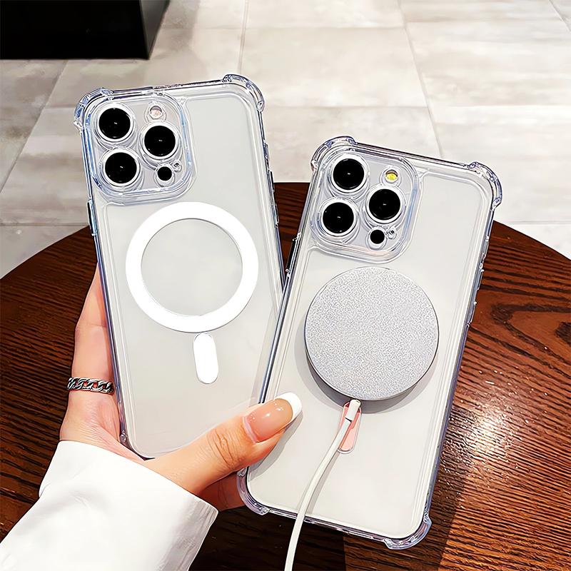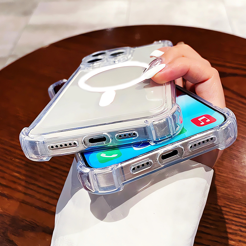 Capa magnética antiqueda para iPhone 16, com airbag nos cantos e transparente, compatível com Apple 15 Promax.