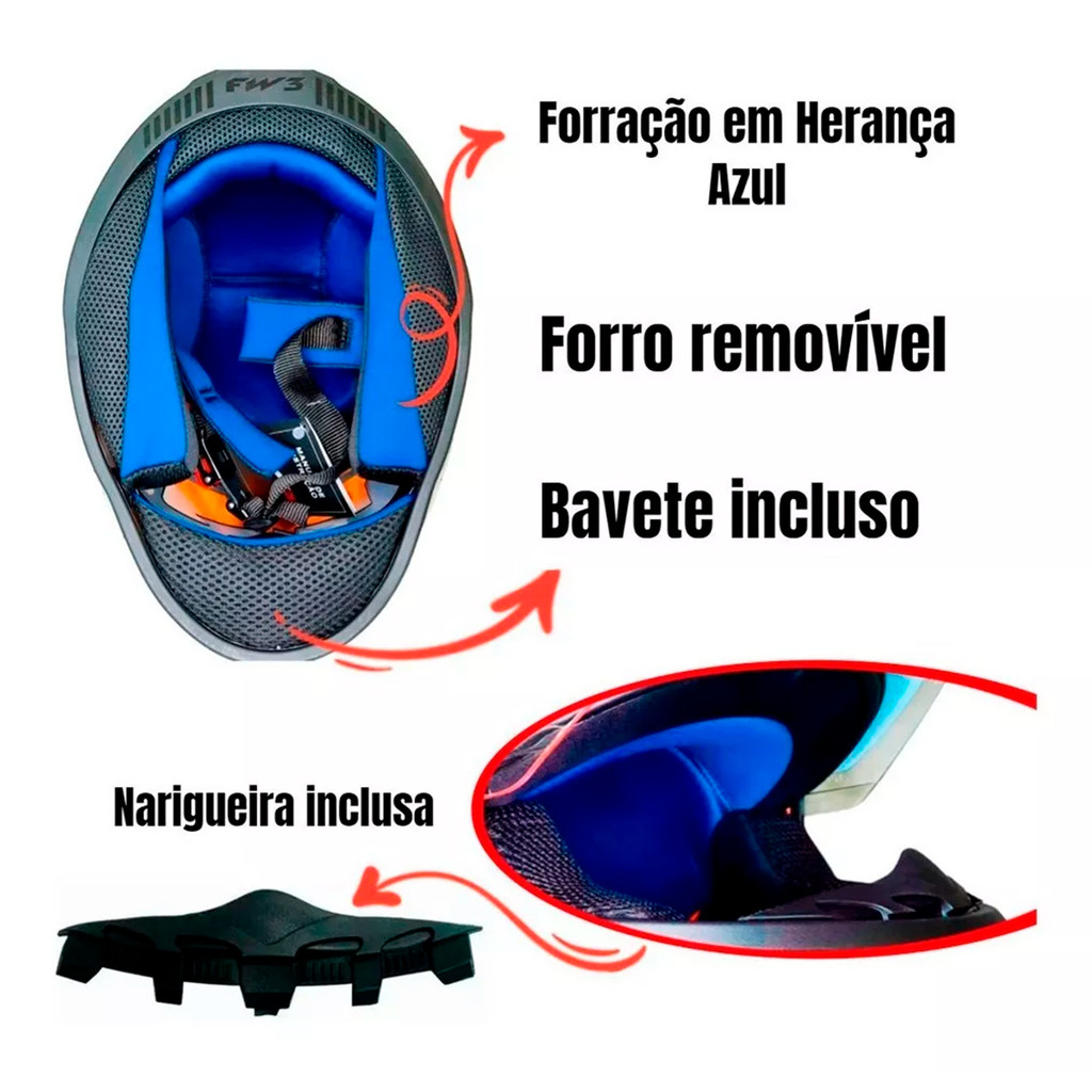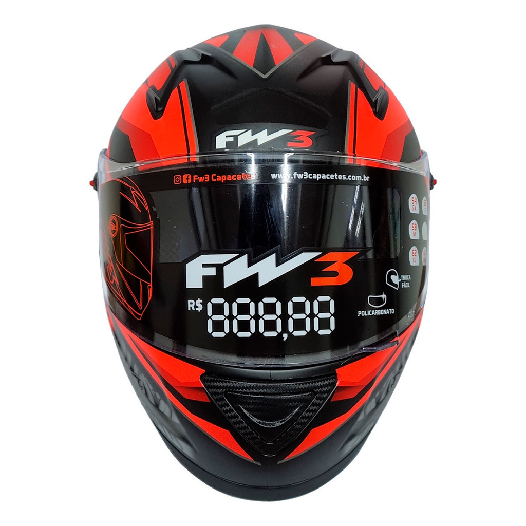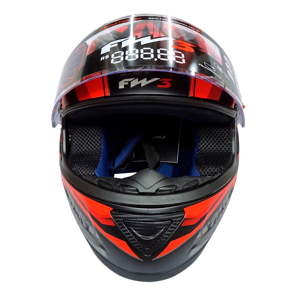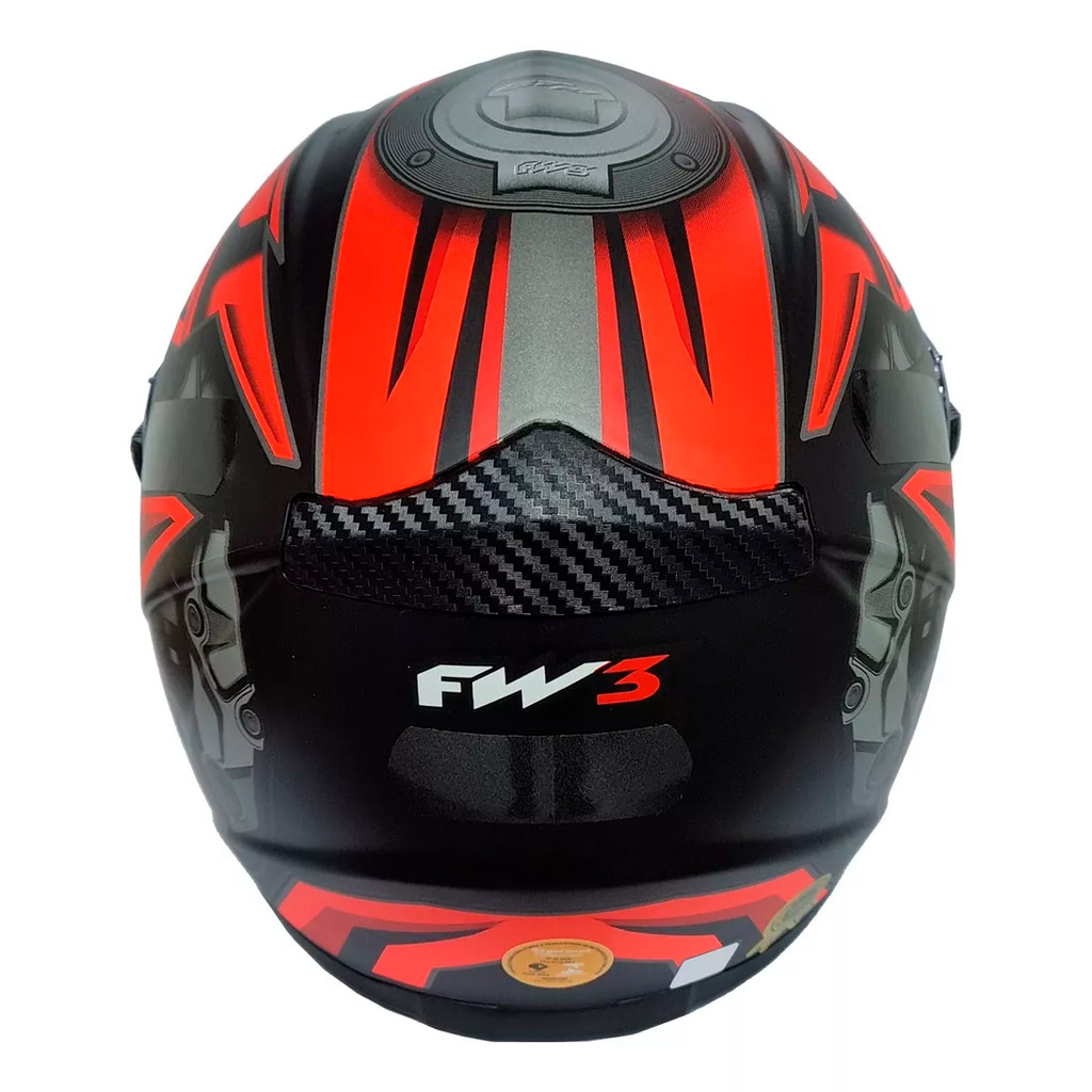 Capacete Fechado Fw3 GTN R1 Cor Preto Fosco Vermelho Tamanhos 56 58 60 - FW3