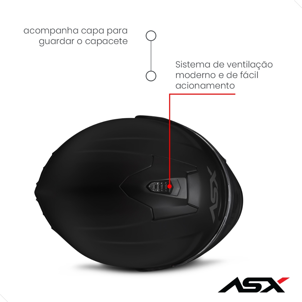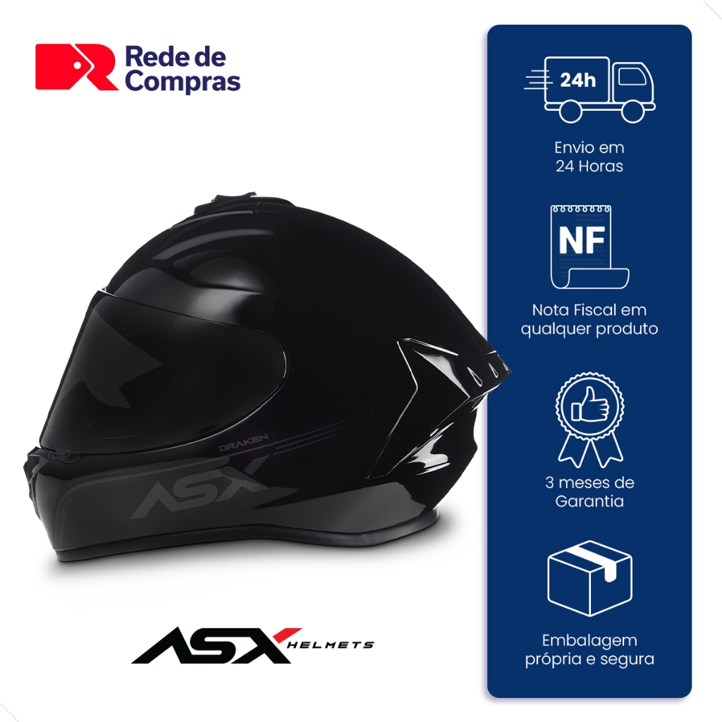 Capacete Moto ASX Fechado Draken Solid Preto Fosco ou Brilhante Unissex