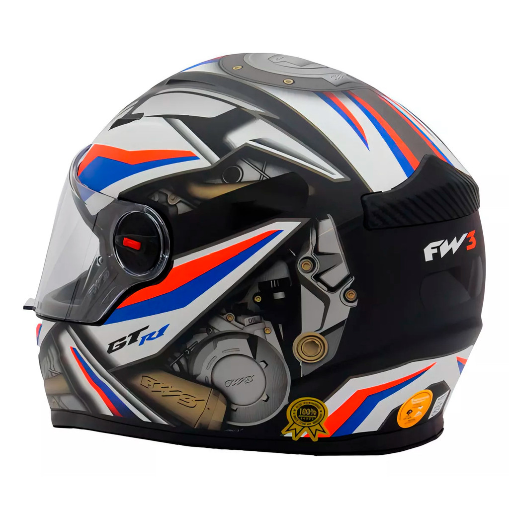 Capacete Moto Fechado GTN R1 Preto Fosco com Azul/Vermelho Viseira Cristal Inmetro Tamanho 56 - FW3