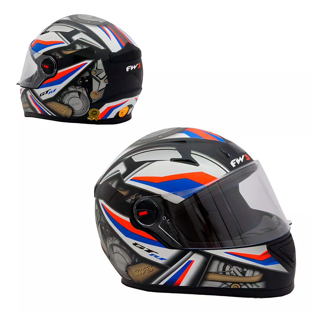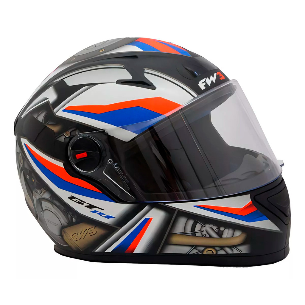 Capacete Moto Fechado GTN R1 Preto Fosco com Azul/Vermelho Viseira Cristal Inmetro Tamanho 58 - FW3