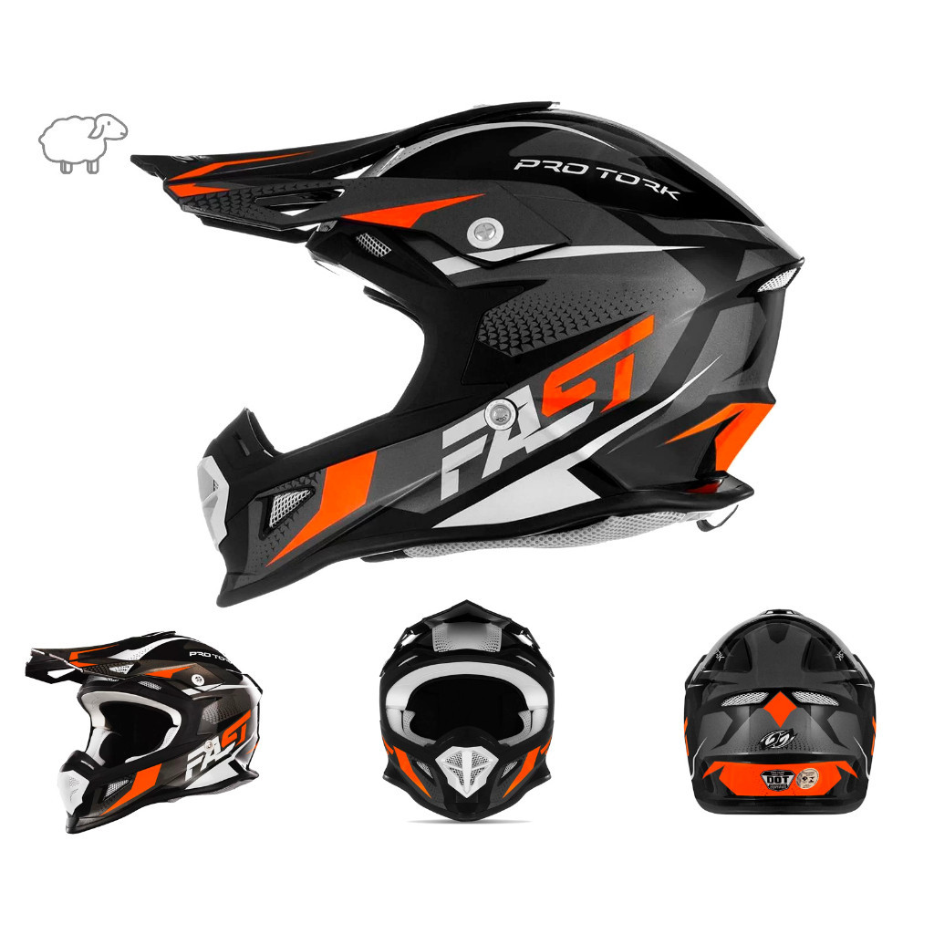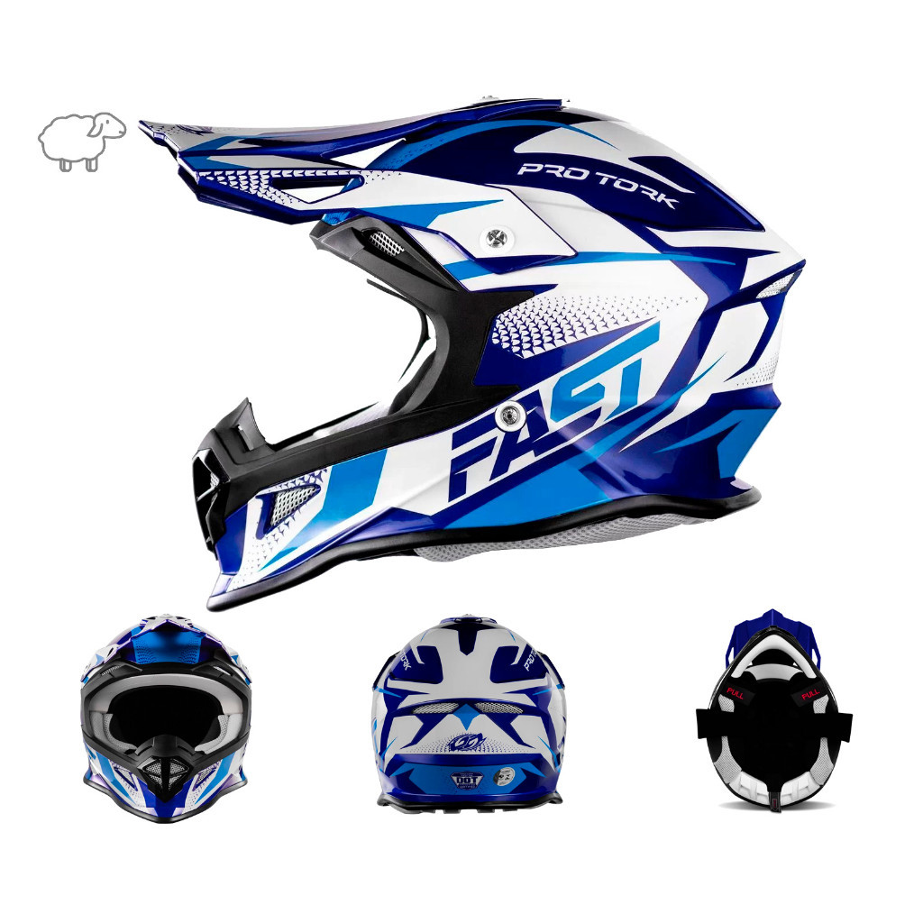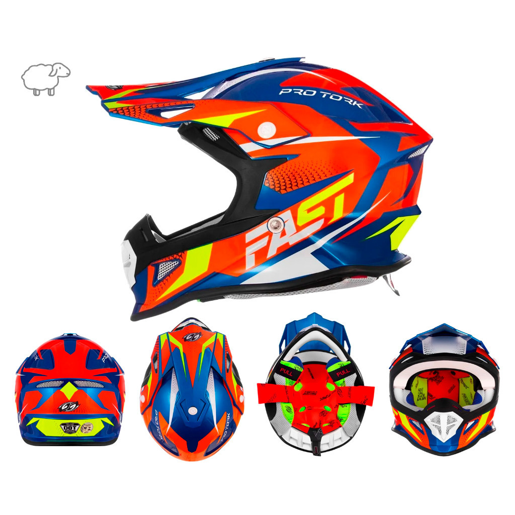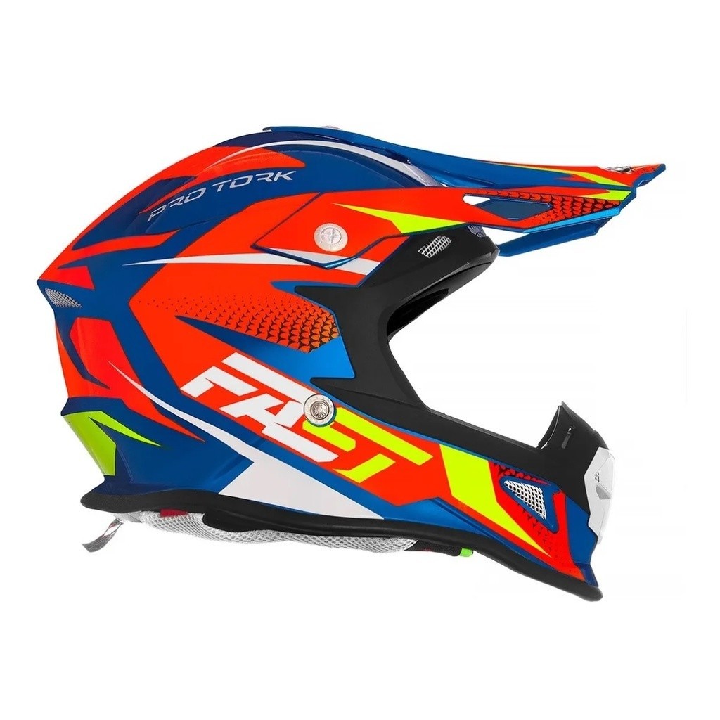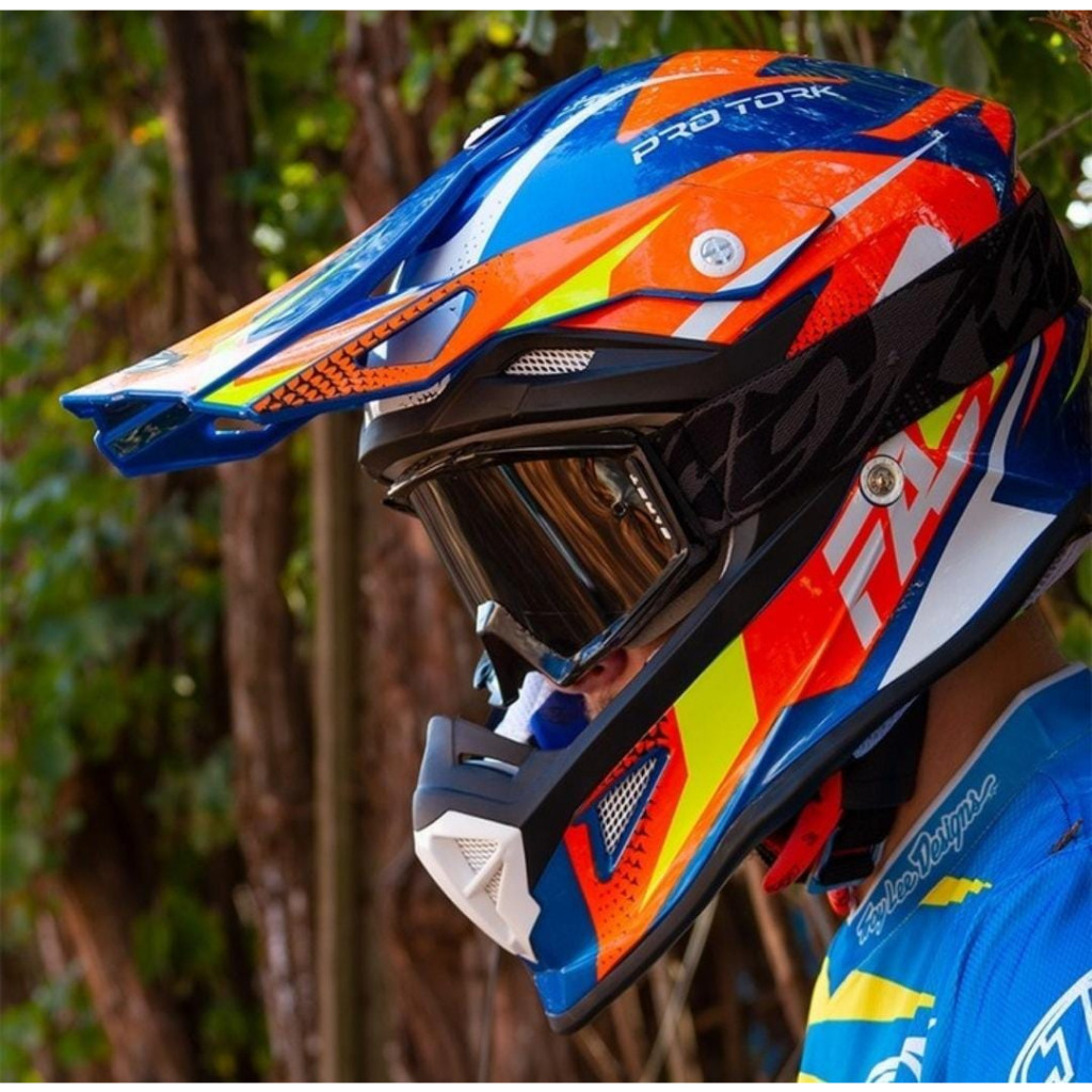 Capacete de Trilha Motocross Cross Fast Fantasy Enduro Pro Tork Azul e Laranja Pala com Regulagem Masculino Feminino Off Road