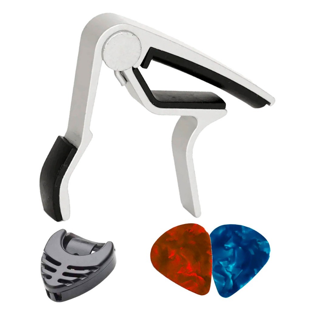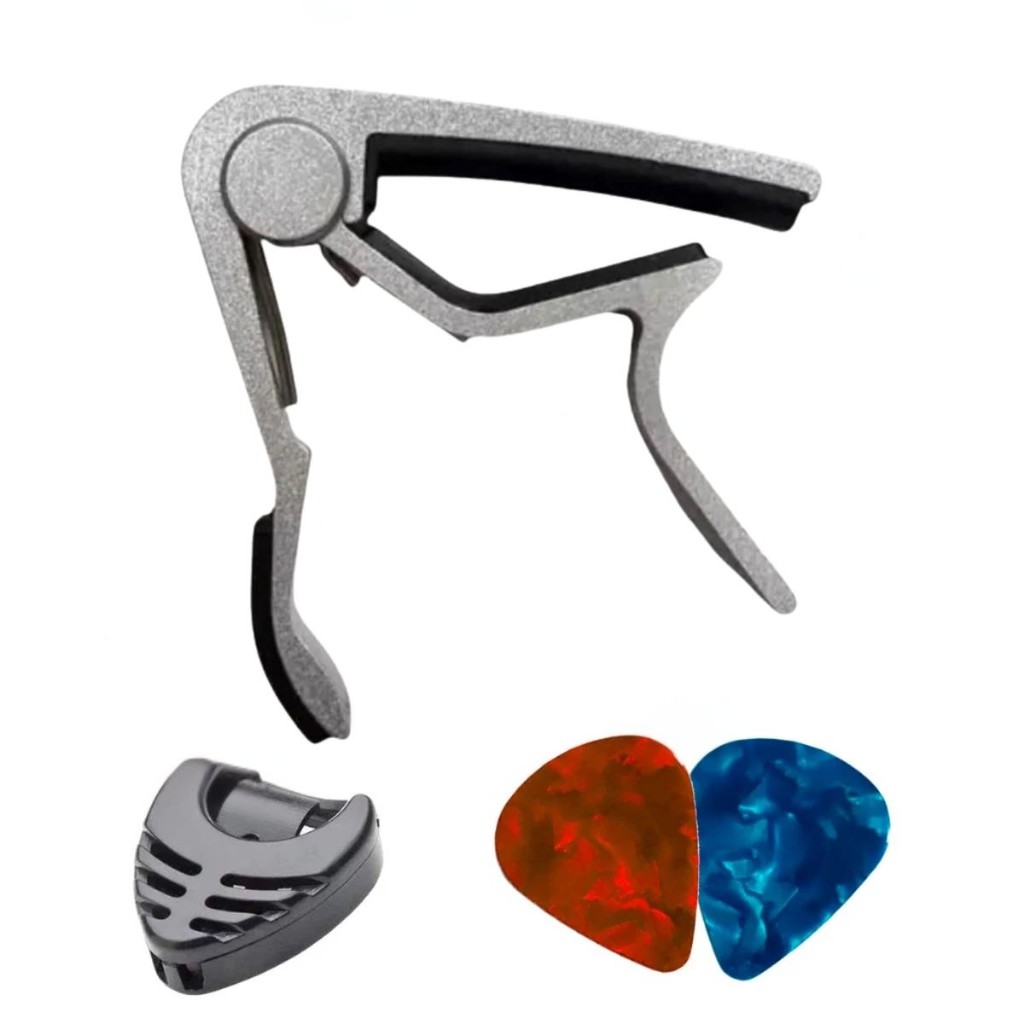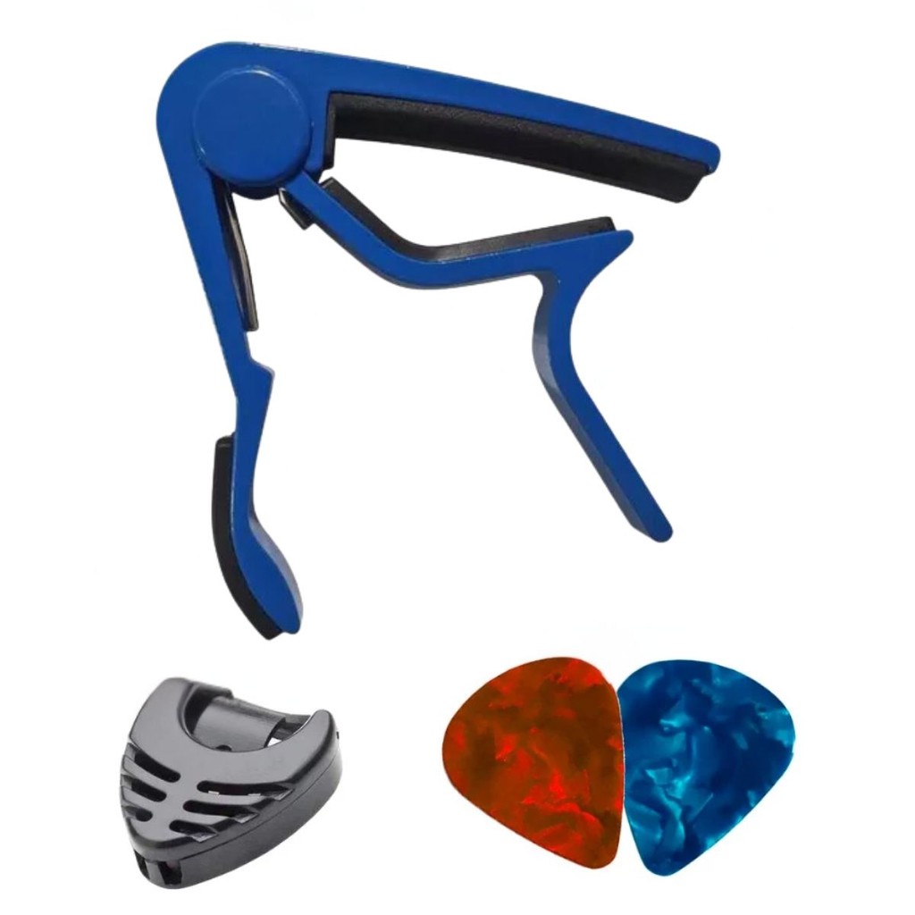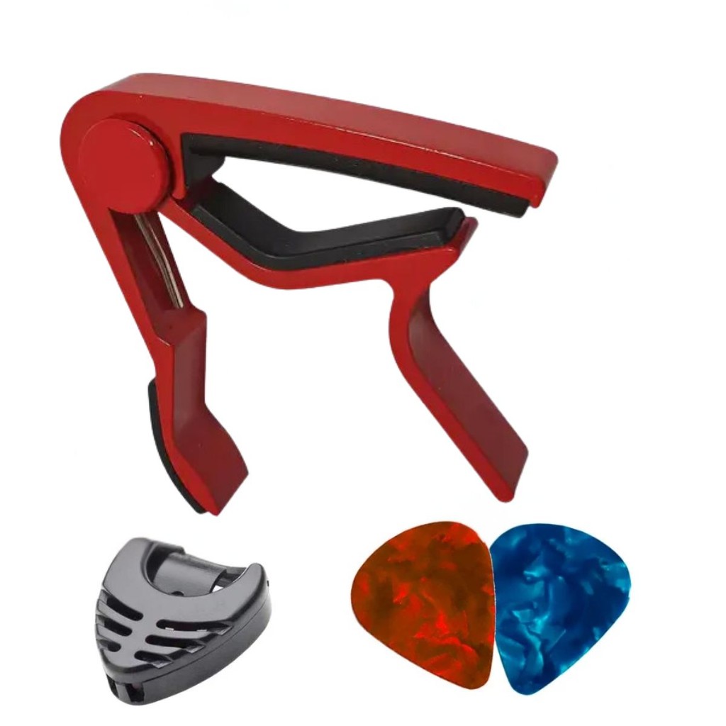Capotraste Pestana Braçadeira Violão Guitarra Ukulele + Porta Palhetas+ 2 Palhetas NV