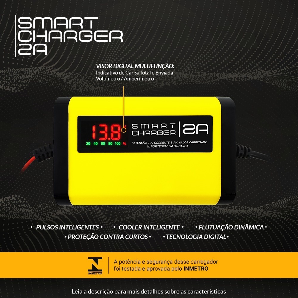 Carregador Bateria Carro E Moto 12v 2Ah Bivolt P/ Moto Todas as Marcas Com Indicador Carga