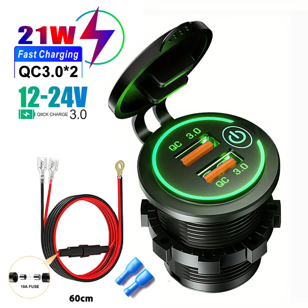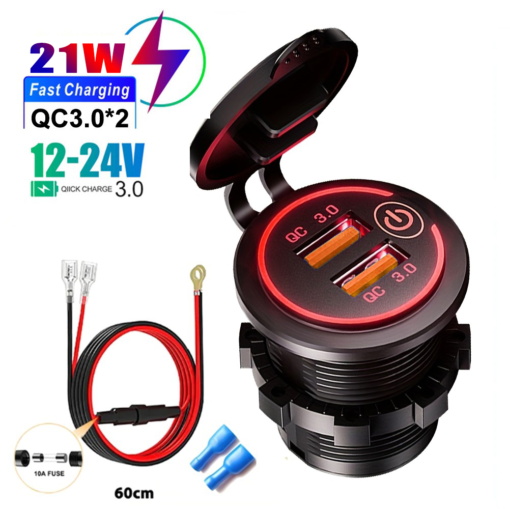 Carregador De Carro Duplo QC 3.0 , À Prova D'água , Tomada USB De Carregamento Rápido Com Interruptor Para Acessórios De
