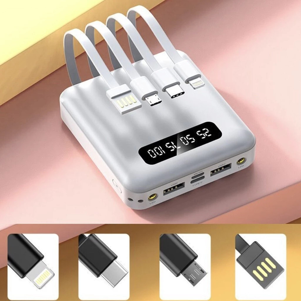 Carregador Portátil 10000mah Com 4 Cabos De Carregamento Rápido LED Banco De Potência Digital DAFUSHOP