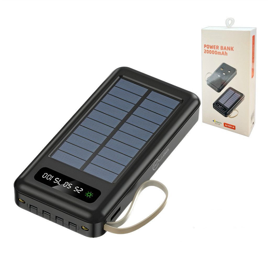 Carregador Portátil Power Bank Solar 20.000mah Com cabos 5 Em1 LED lanterna marisa