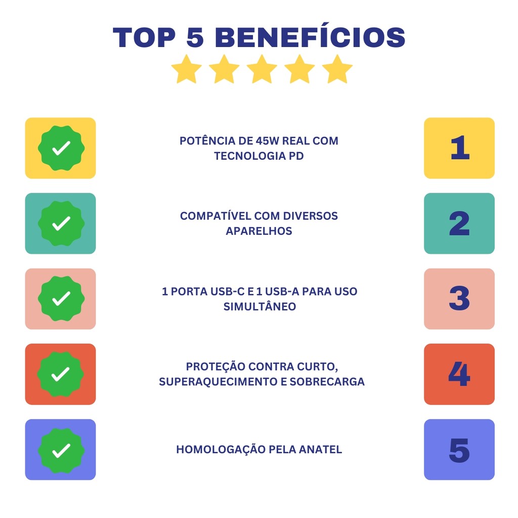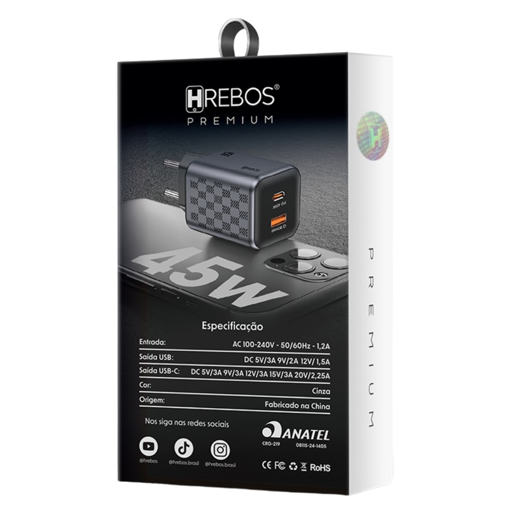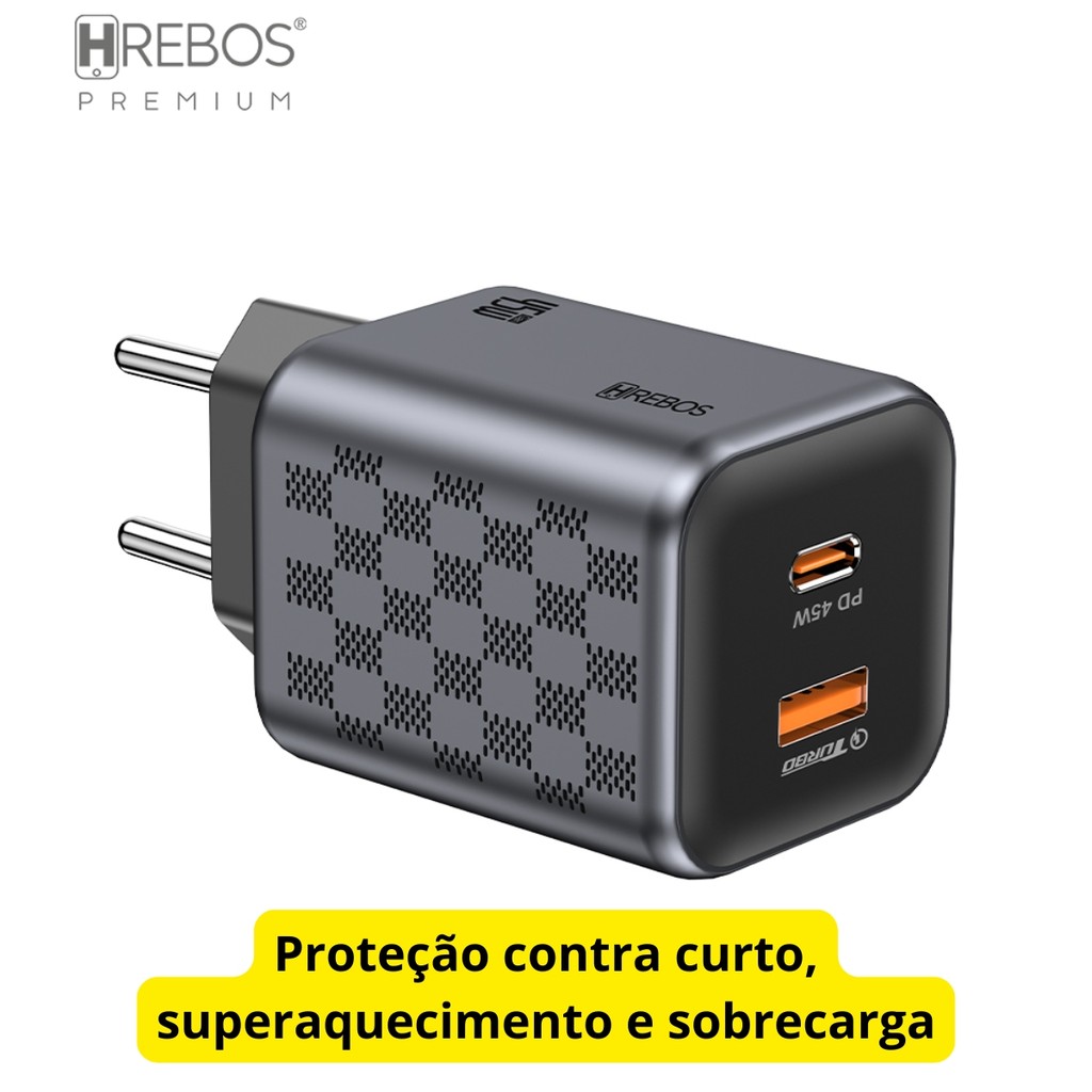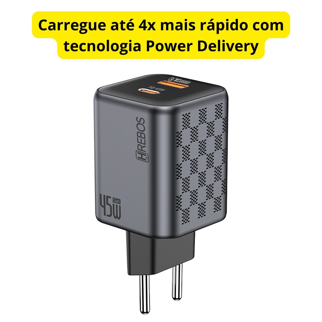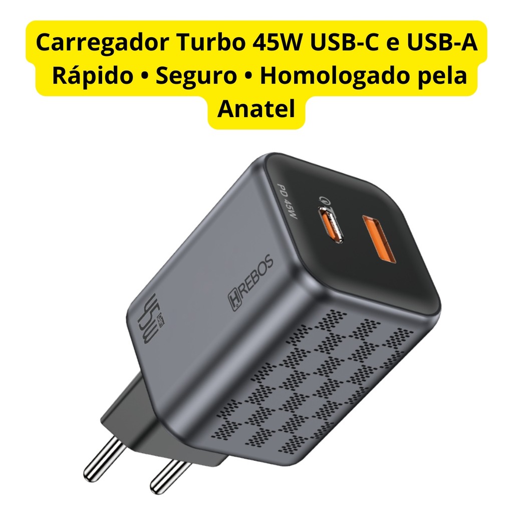 Carregador Turbo 45W USB-C USB Fonte Rápida Original Anatel