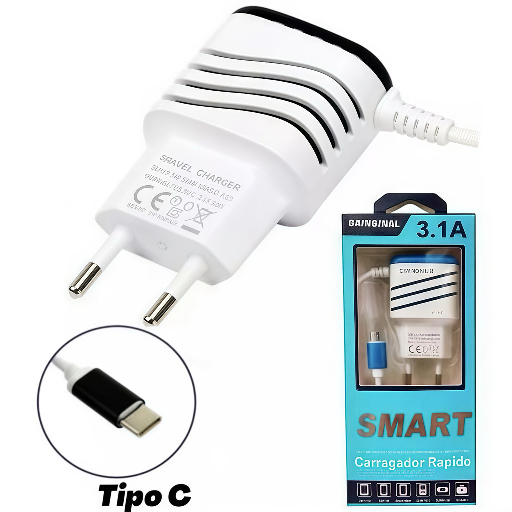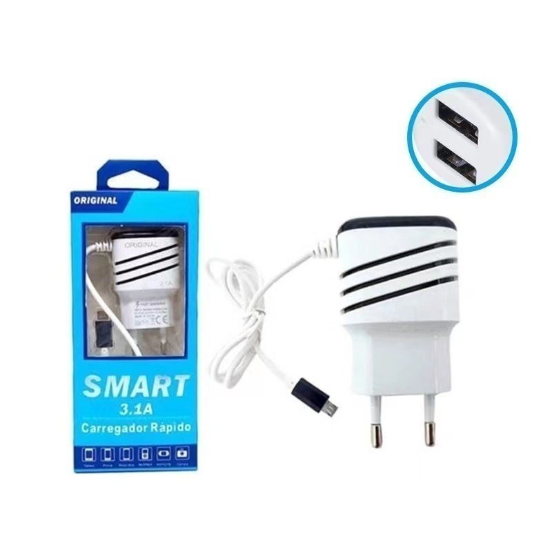 Carregador Turbo Celular Ultra Rápido 3.1 Tipo c Micro USB 2 Usbp Android Portátil