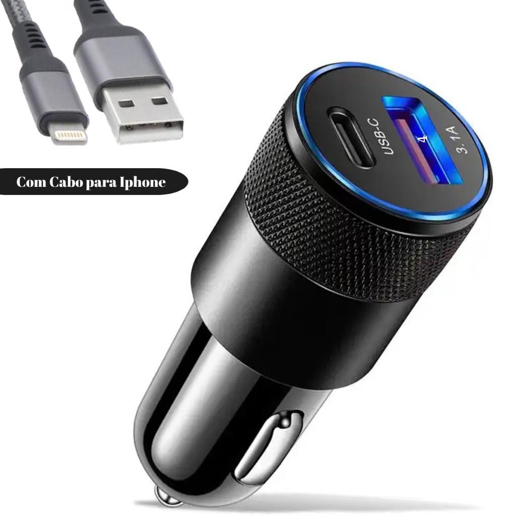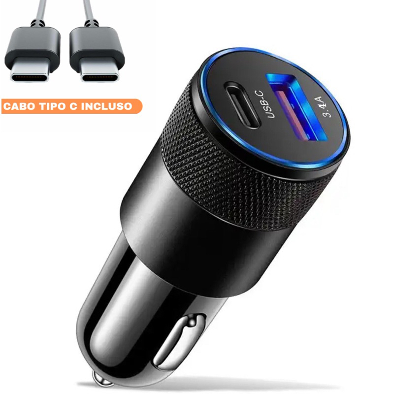Carregador Veicular USB C + USB 3.4A Turbo Carregamento rápido/Universal
