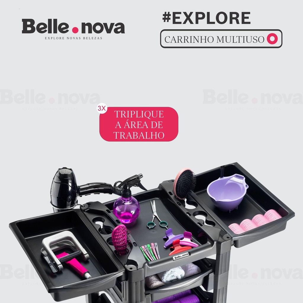 Carrinho Auxiliar Salão de Beleza Organizador Multiuso com Rodinhas Belle Nova Theo para Cozinha e Lavanderia