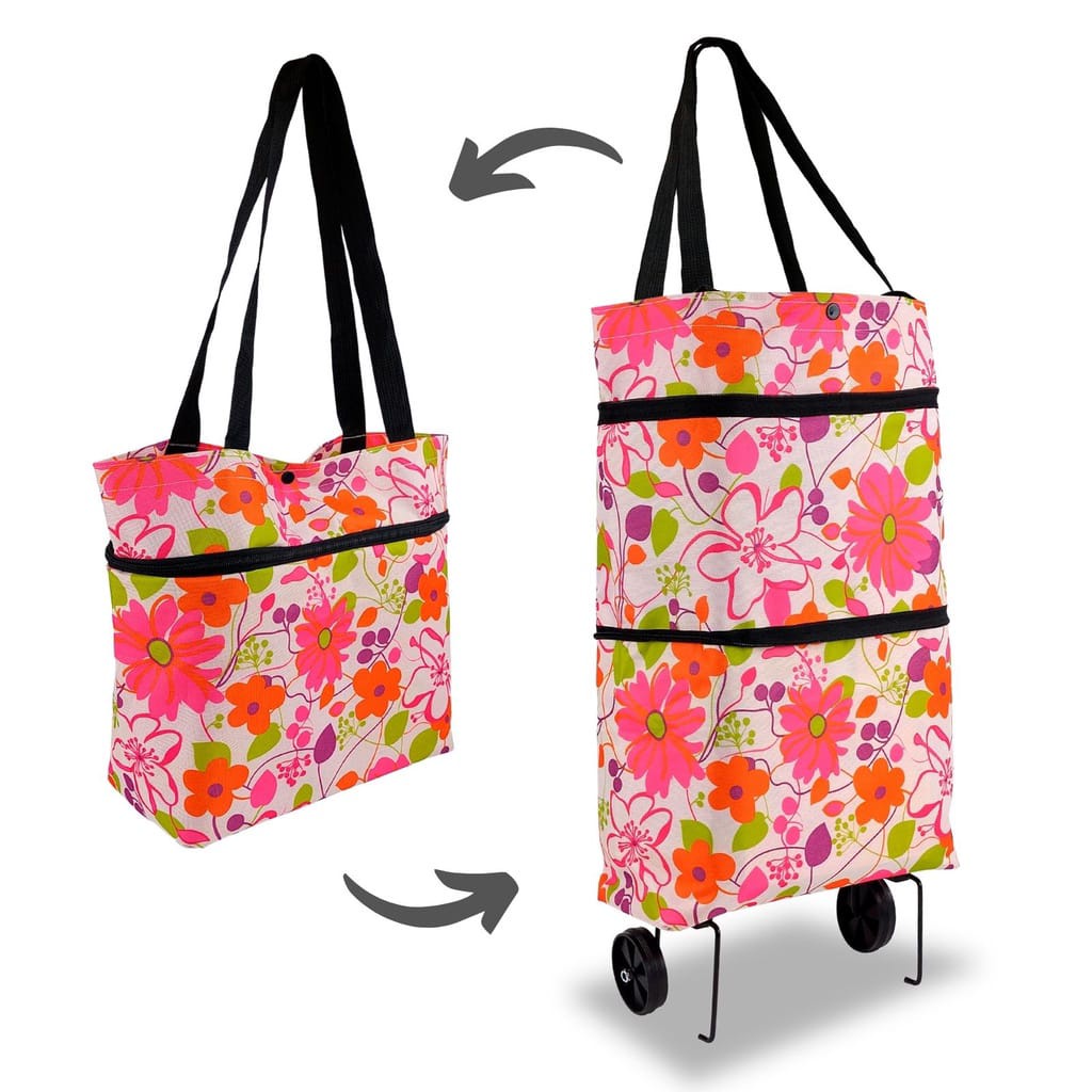 Carrinho Compras Dobrável 2 em 1 Bolsa Sacola Rodinhas Mercado Feira Grande Capacidade Prático ref: 852