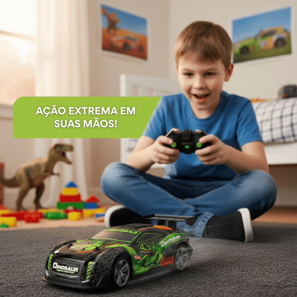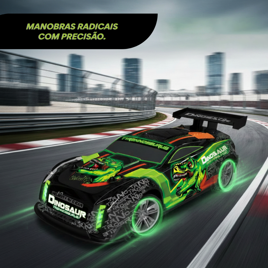 Carrinho Controle Remoto Tiranossauro Rex Racing Super Luz Rápido Até 15km/h Recarregável Kizumba