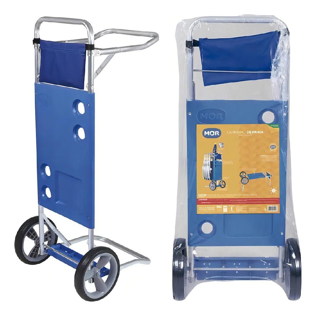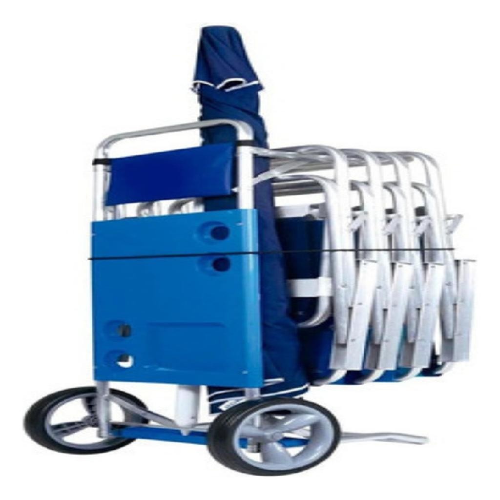 Carrinho De Praia P/ 5 Cadeiras Vira Mesa Alumínio Com Bolsa Azul / Preto