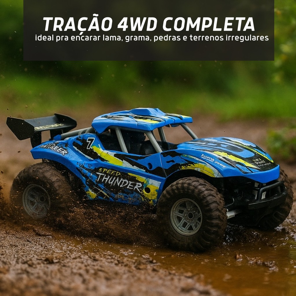 Carrinho Jeep Controle Remoto 4x4 Azul Recarregável Off-Road Brinquedo Presente Infantil Kizumba