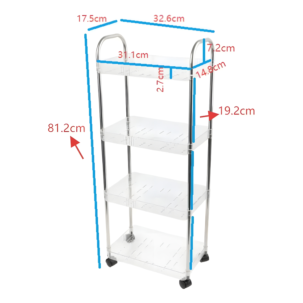 Carrinho Multiuso Conthey 4 Prateleiras Acrílico Rodínhas