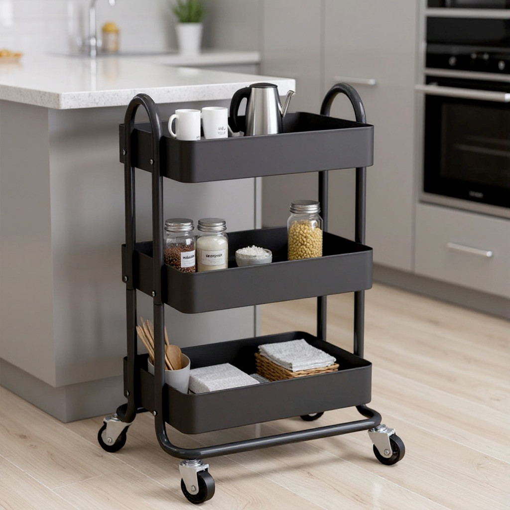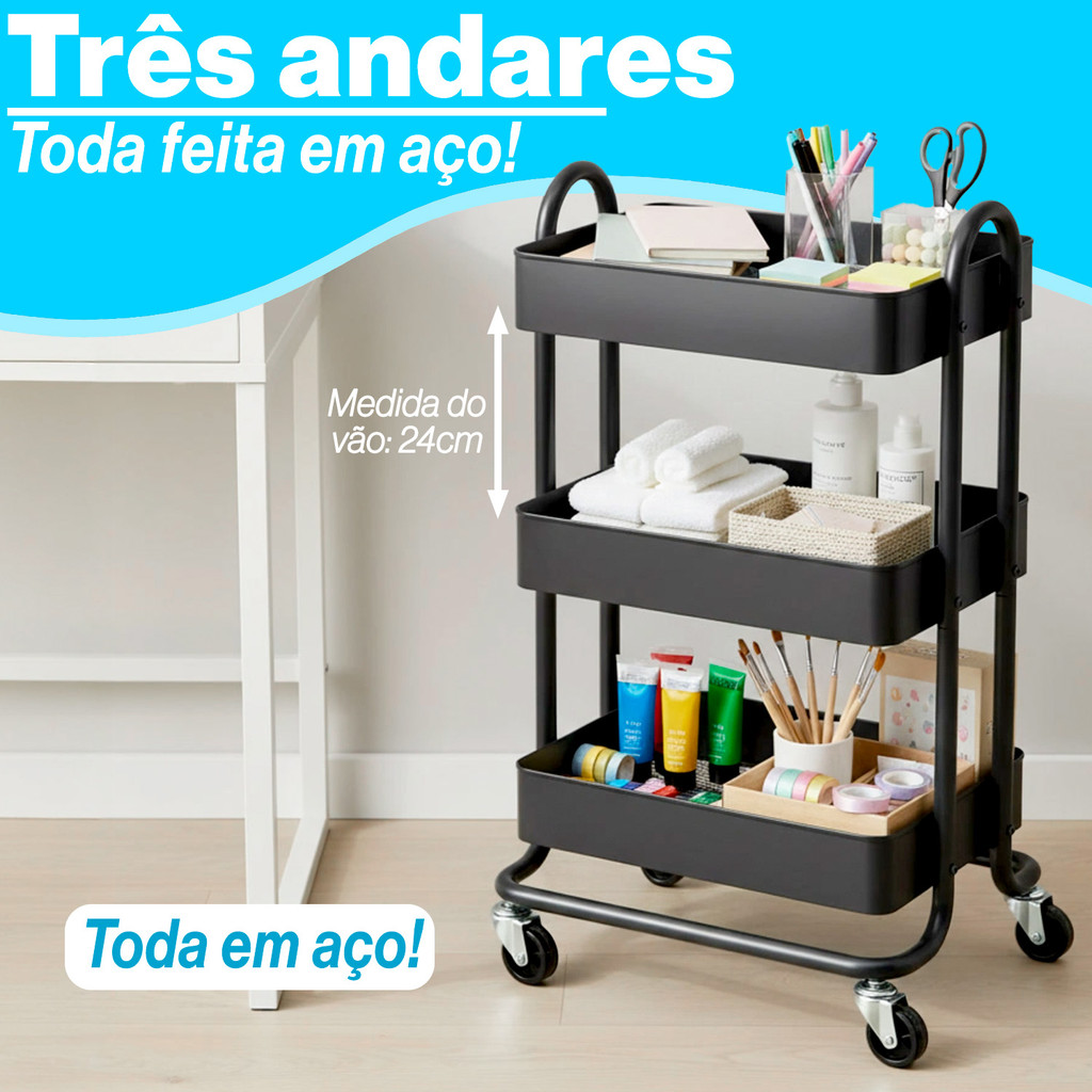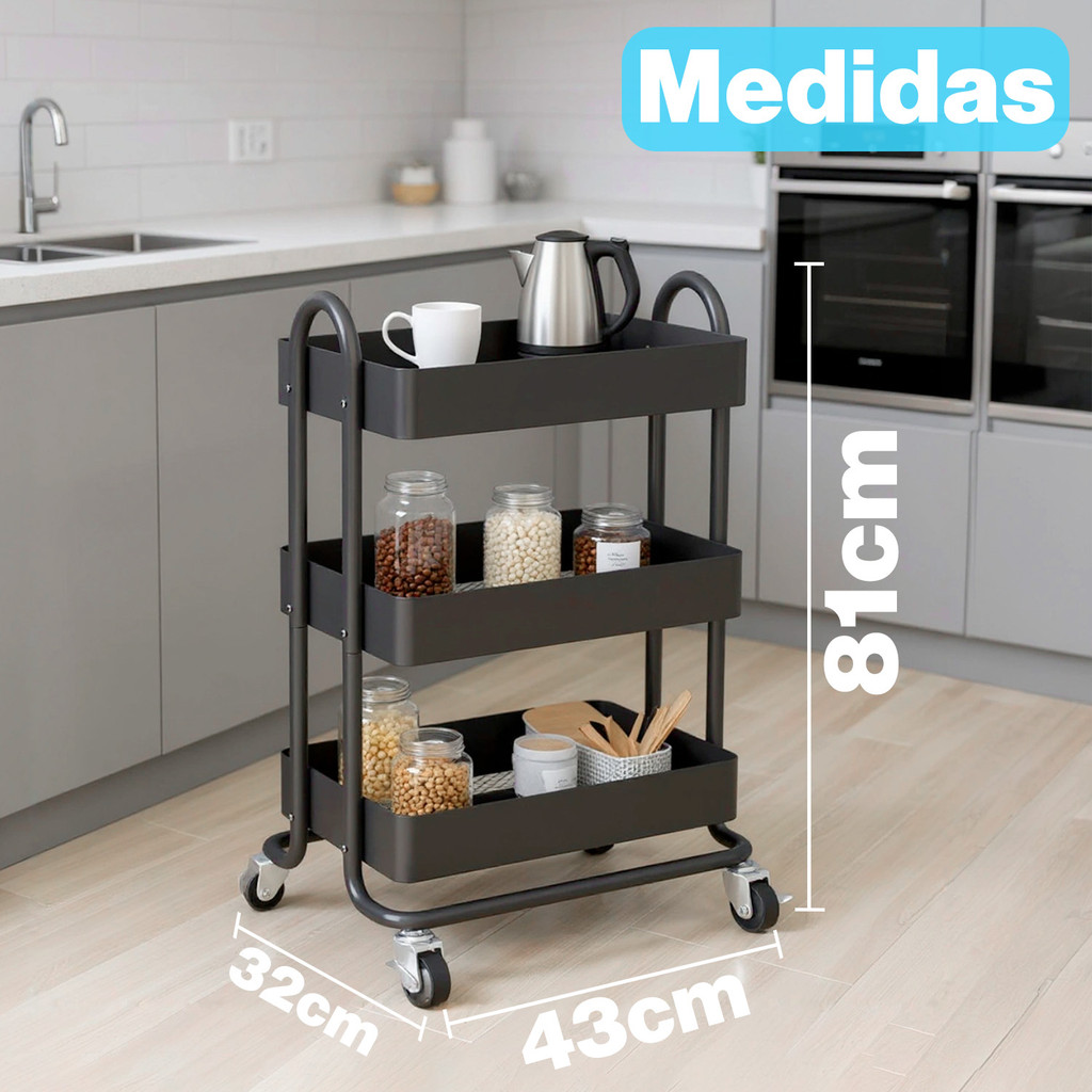 Carrinho Organizador Metal Multiuso Fruteira Organização em Aço Carbono com Rodinhas 3 prateleiras❤️
