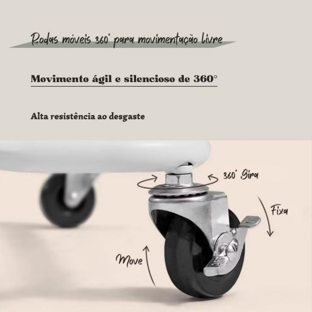 Carrinho Organizador Multiuso 3 Prateleiras e Alça Auxiliar Em Aço Com Rodinha Reforçado
