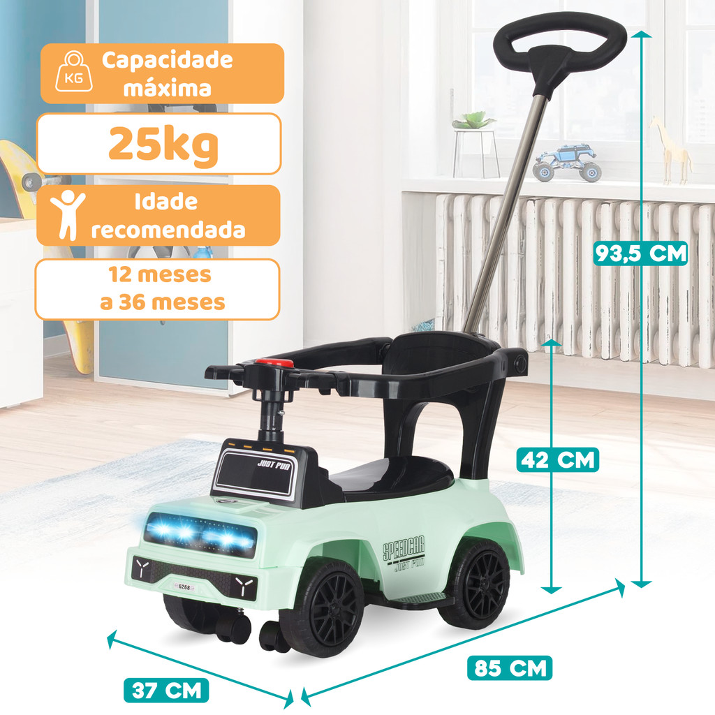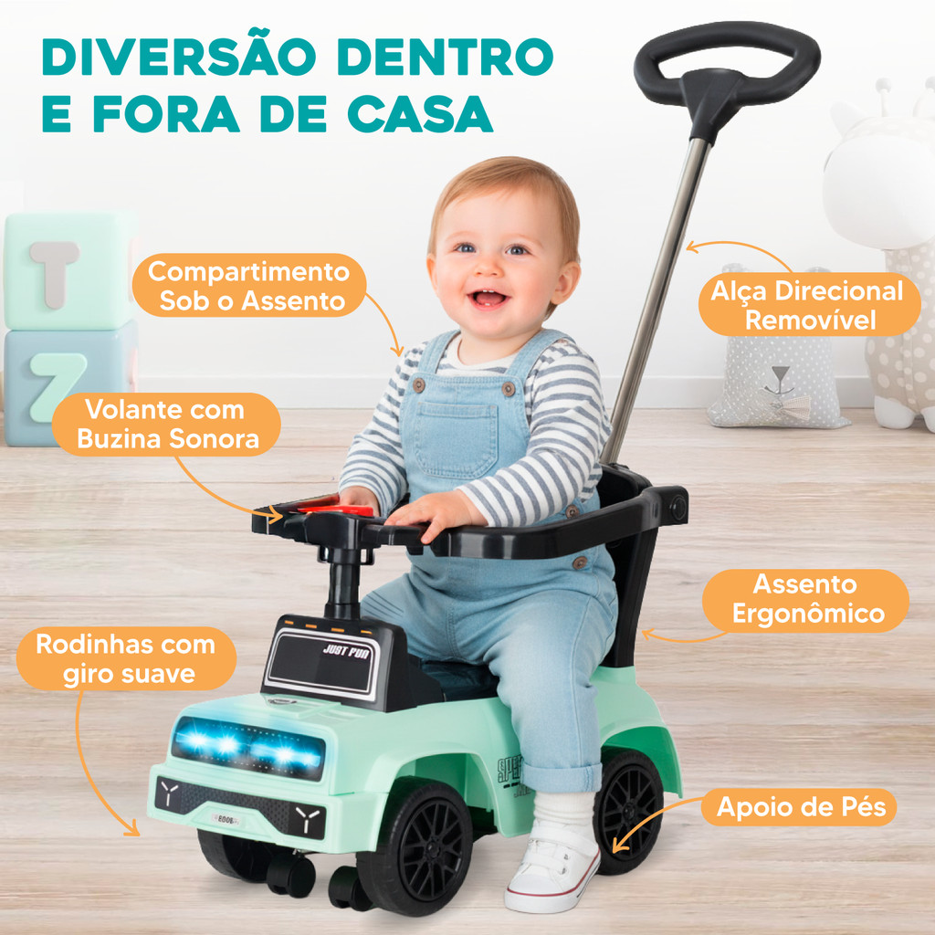 Carrinho Passeio Jip Jipe Infantil Empurrador Quadriciclo Criança Presente Bebê Andador Rosa, Verde