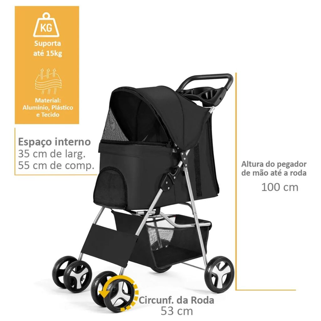 Carrinho Passeio Transporte Gato Cachorro Até 15kg -Vermelho