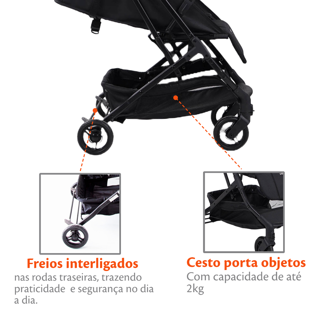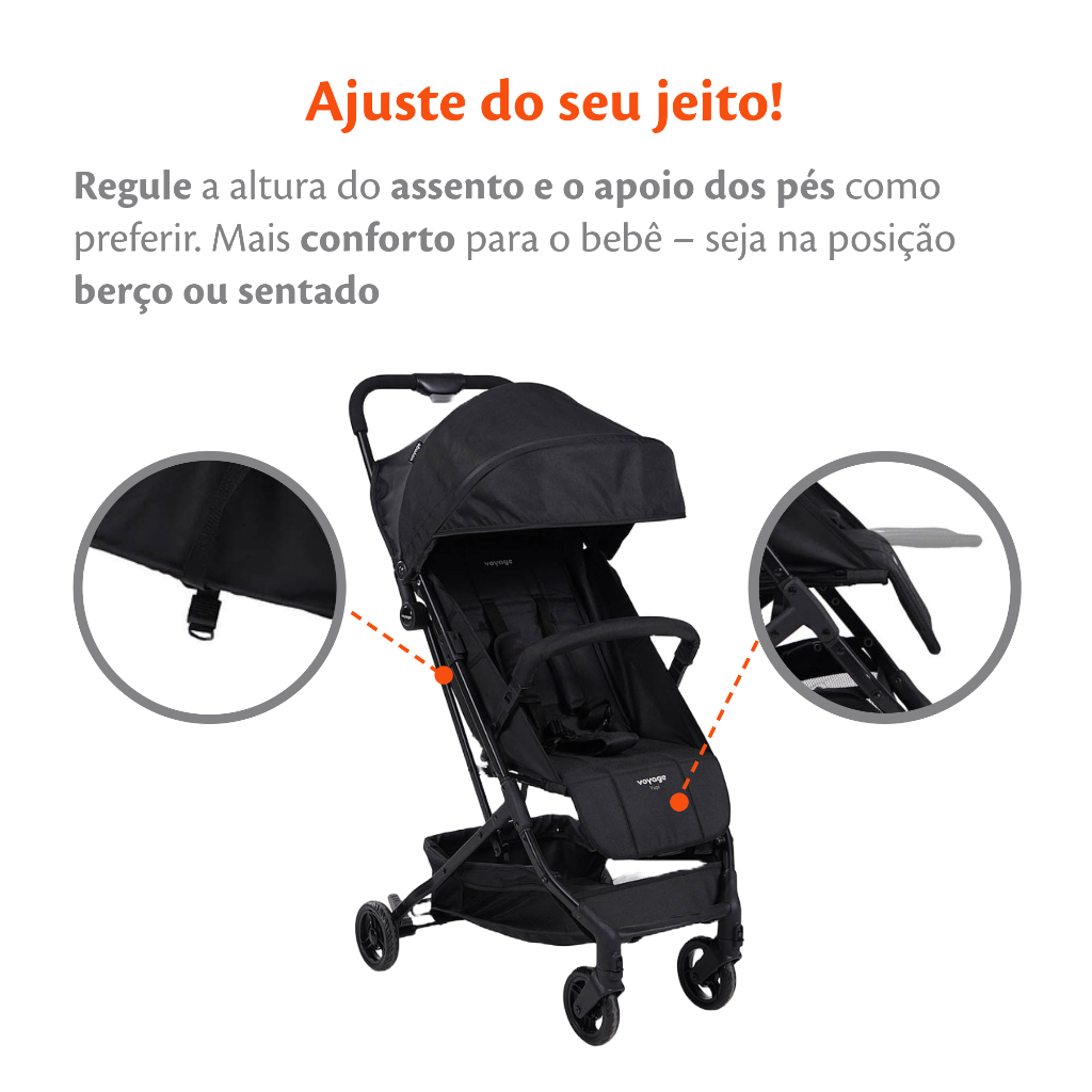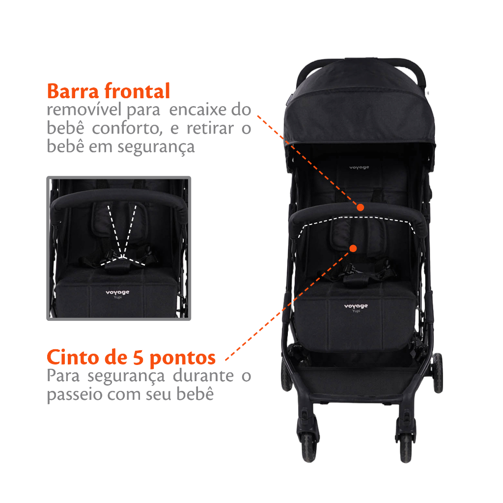 Carrinho de Bebê 0-15kg Ajustável Yupi Preto - Voyage