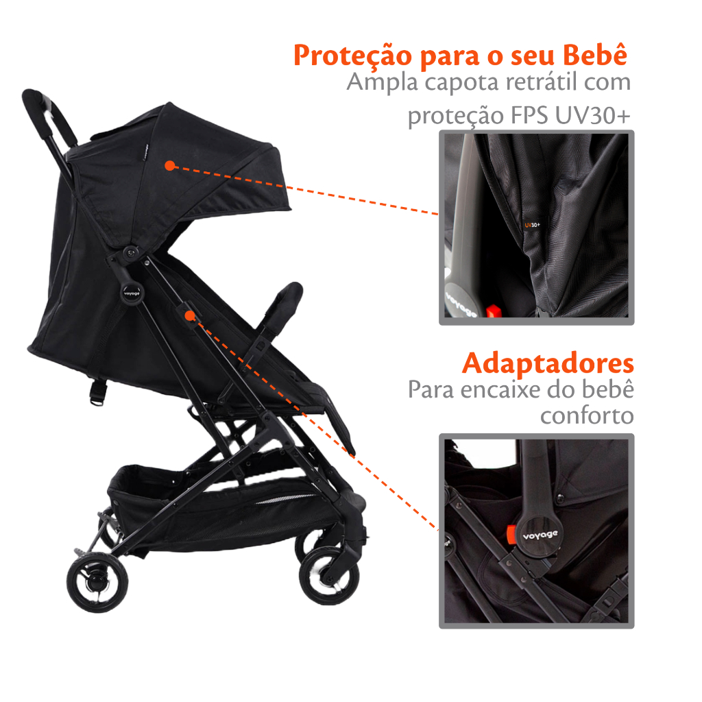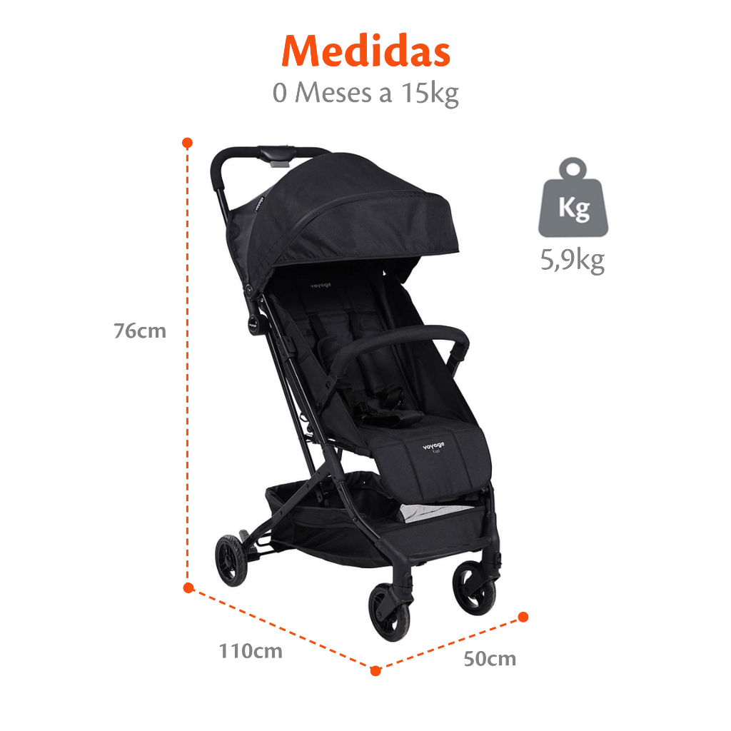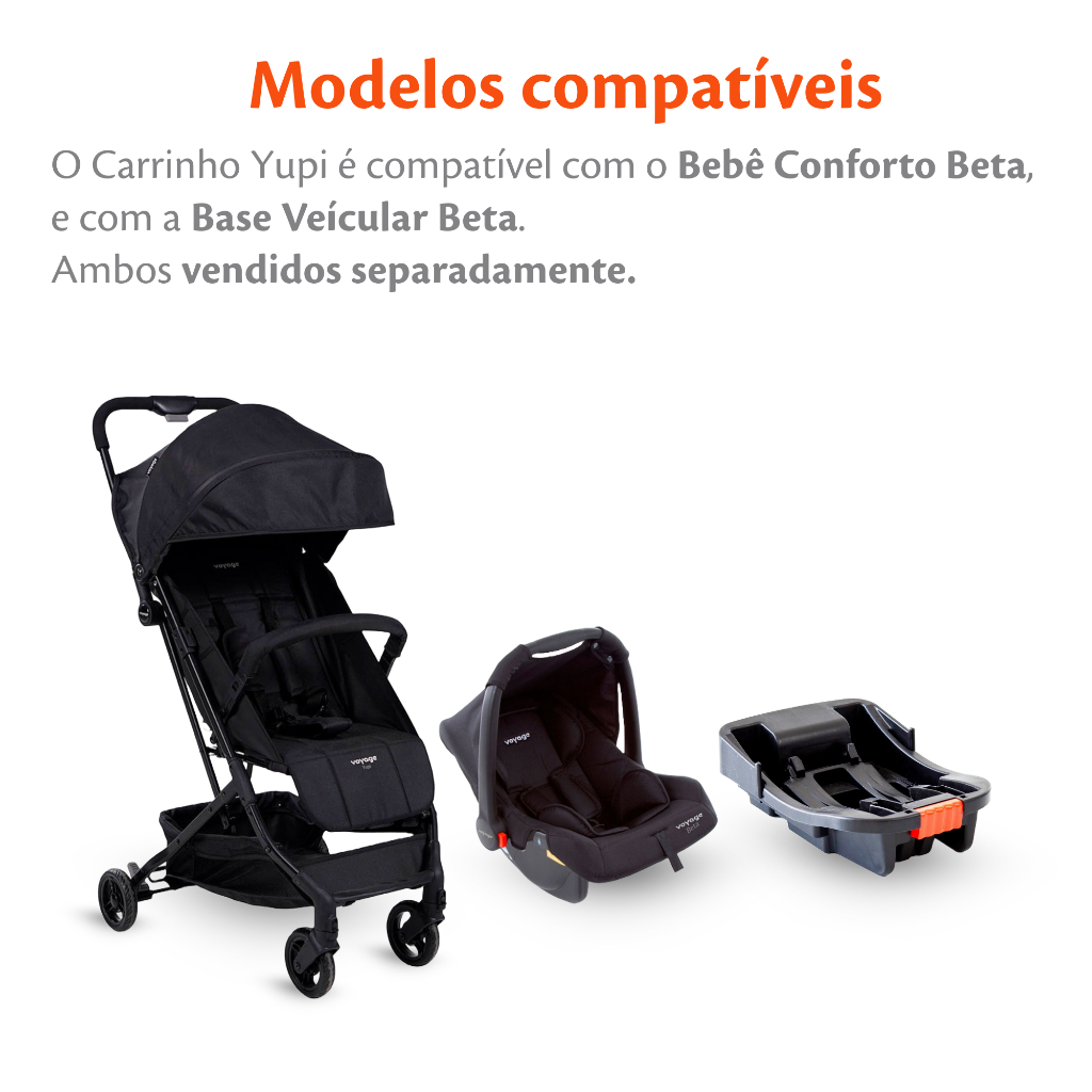 Carrinho de Bebê 0-15kg Ajustável Yupi Preto - Voyage