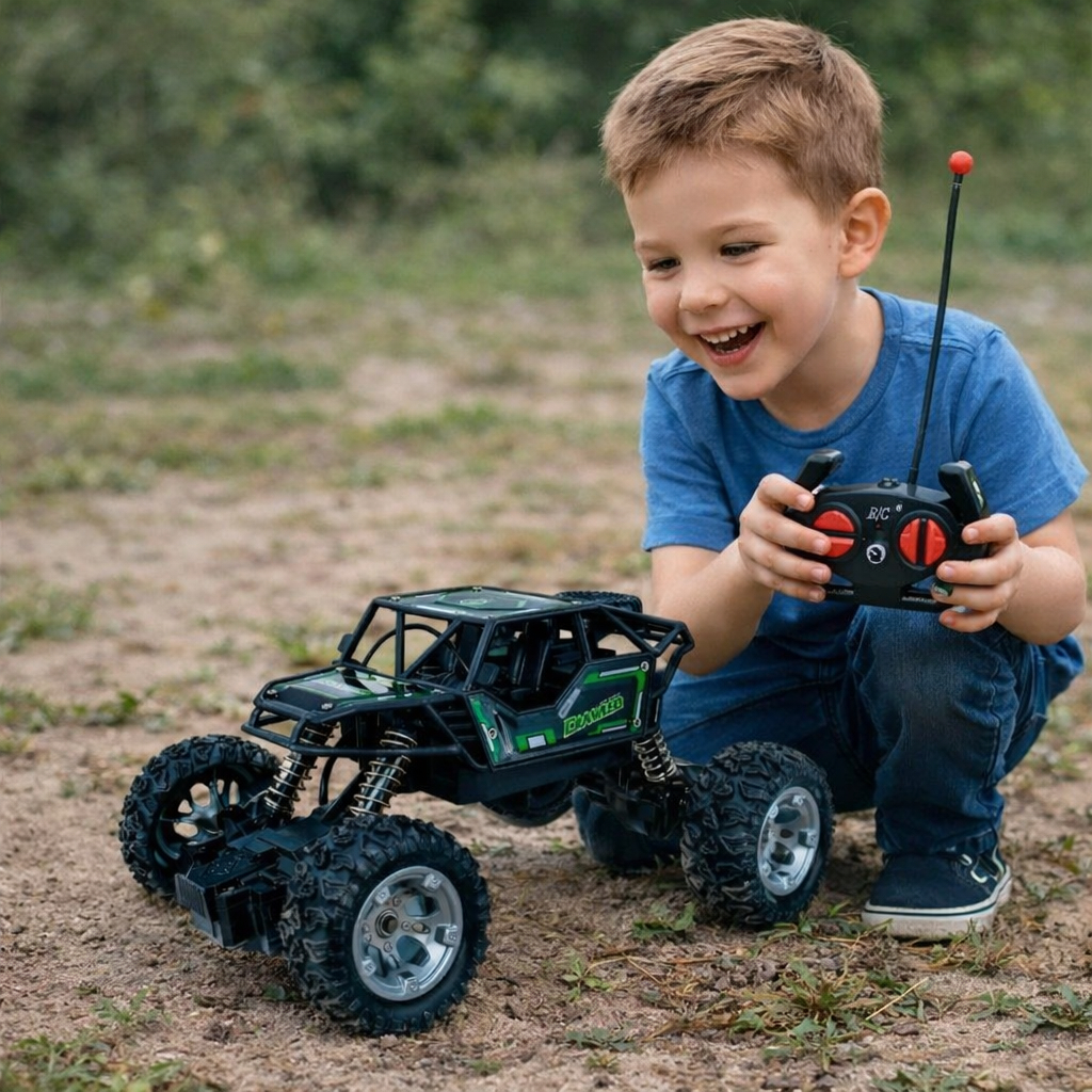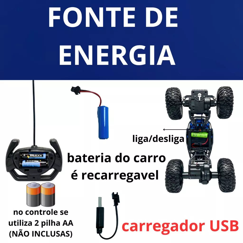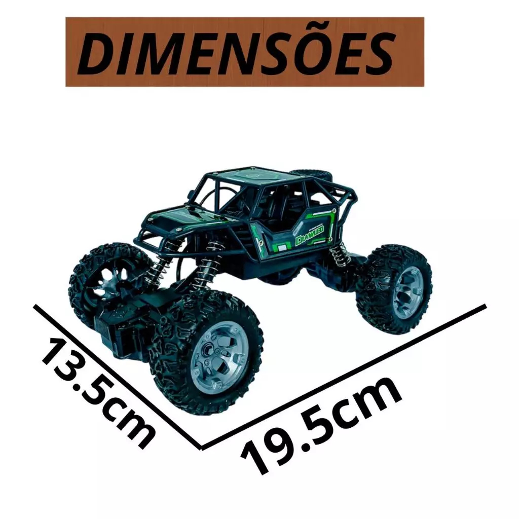 Carrinho de Controle Remoto 4x4 Recarregável Anda Na Terra Jeep Off Road Rock Crawler