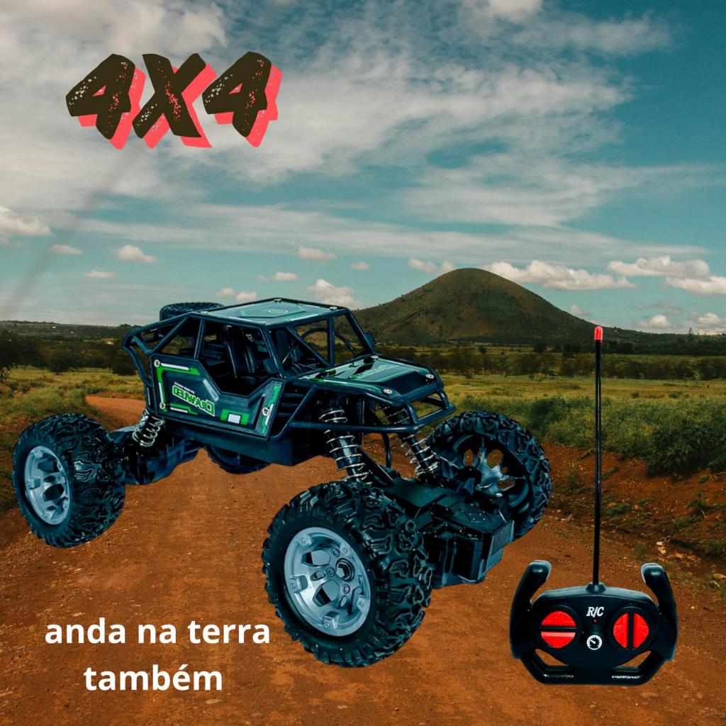 Carrinho de Controle Remoto 4x4 Recarregável USB Anda Na Terra Jeep Off Road Rock Crawler