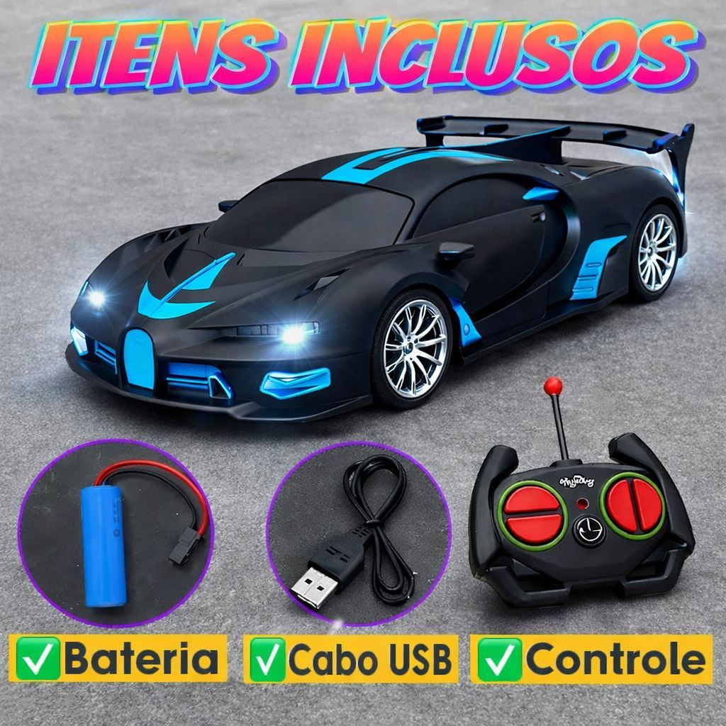 Carrinho de Controle Remoto Recarregável Esportivo Competição Ferrari Lamborghini Bugati Velocidade