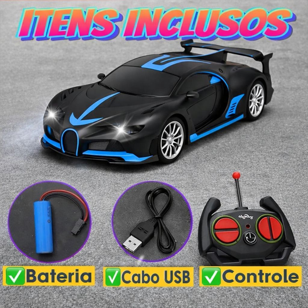 Carrinho de Controle Remoto Recarregável Esportivo Competição Ferrari Lamborghini Bugati Velocidade