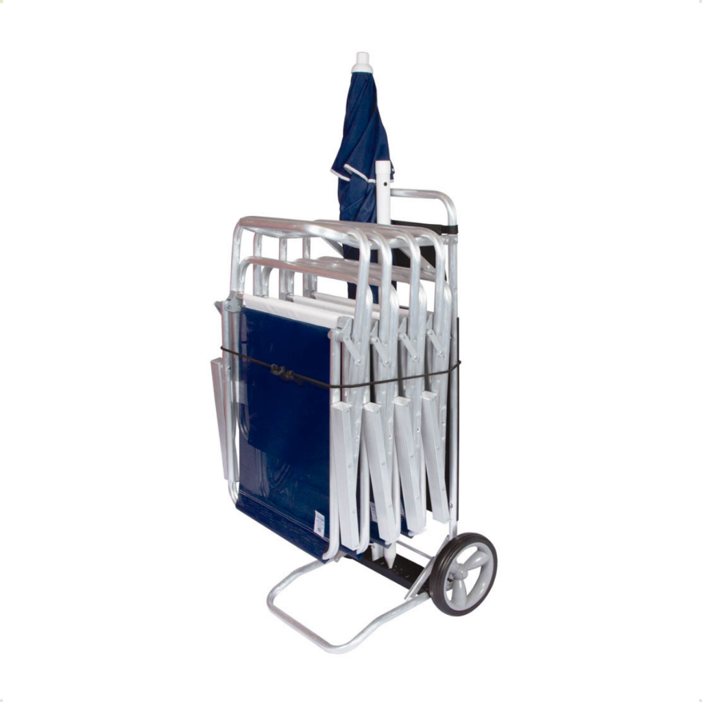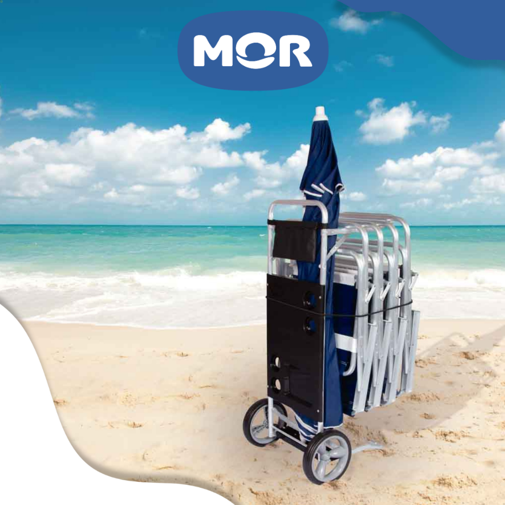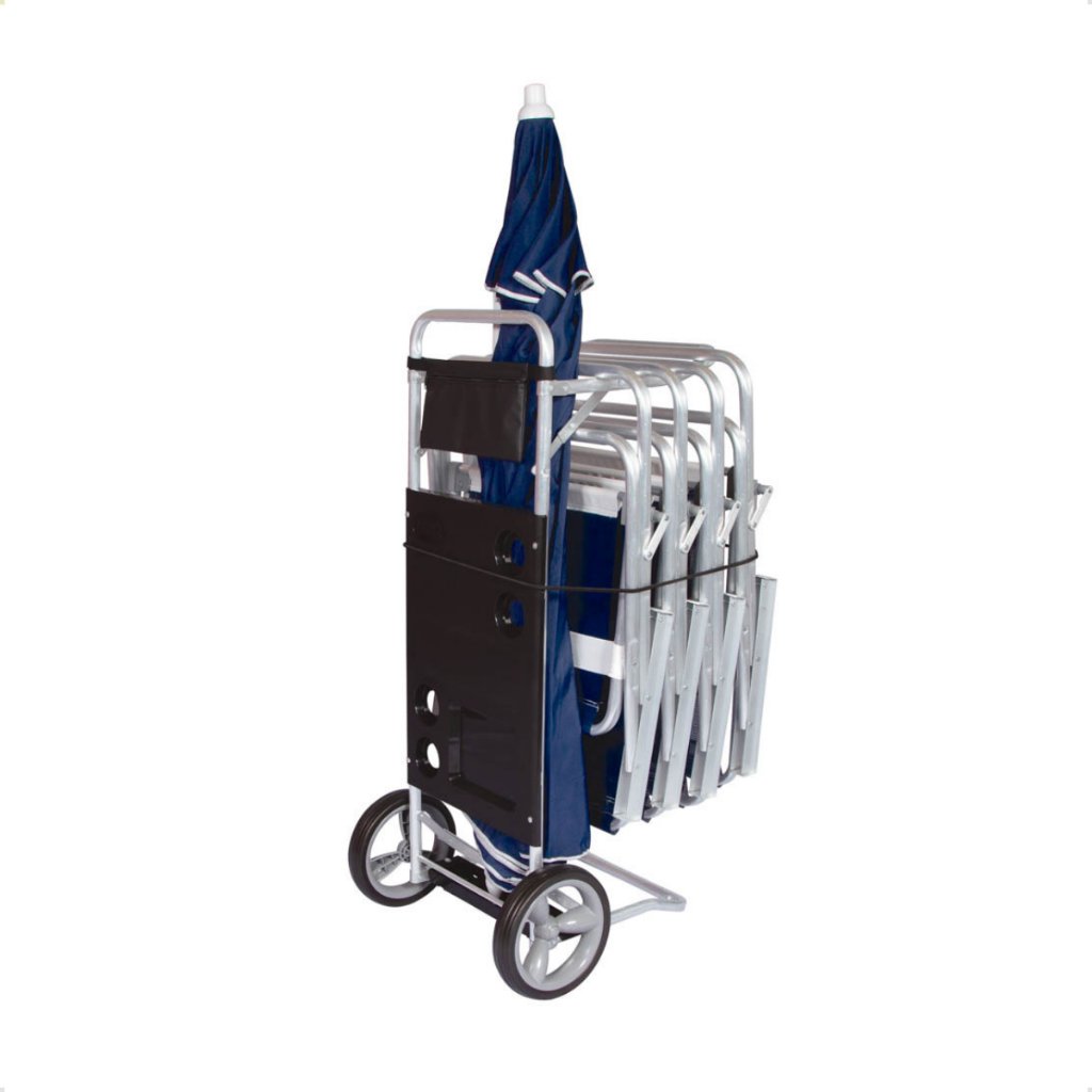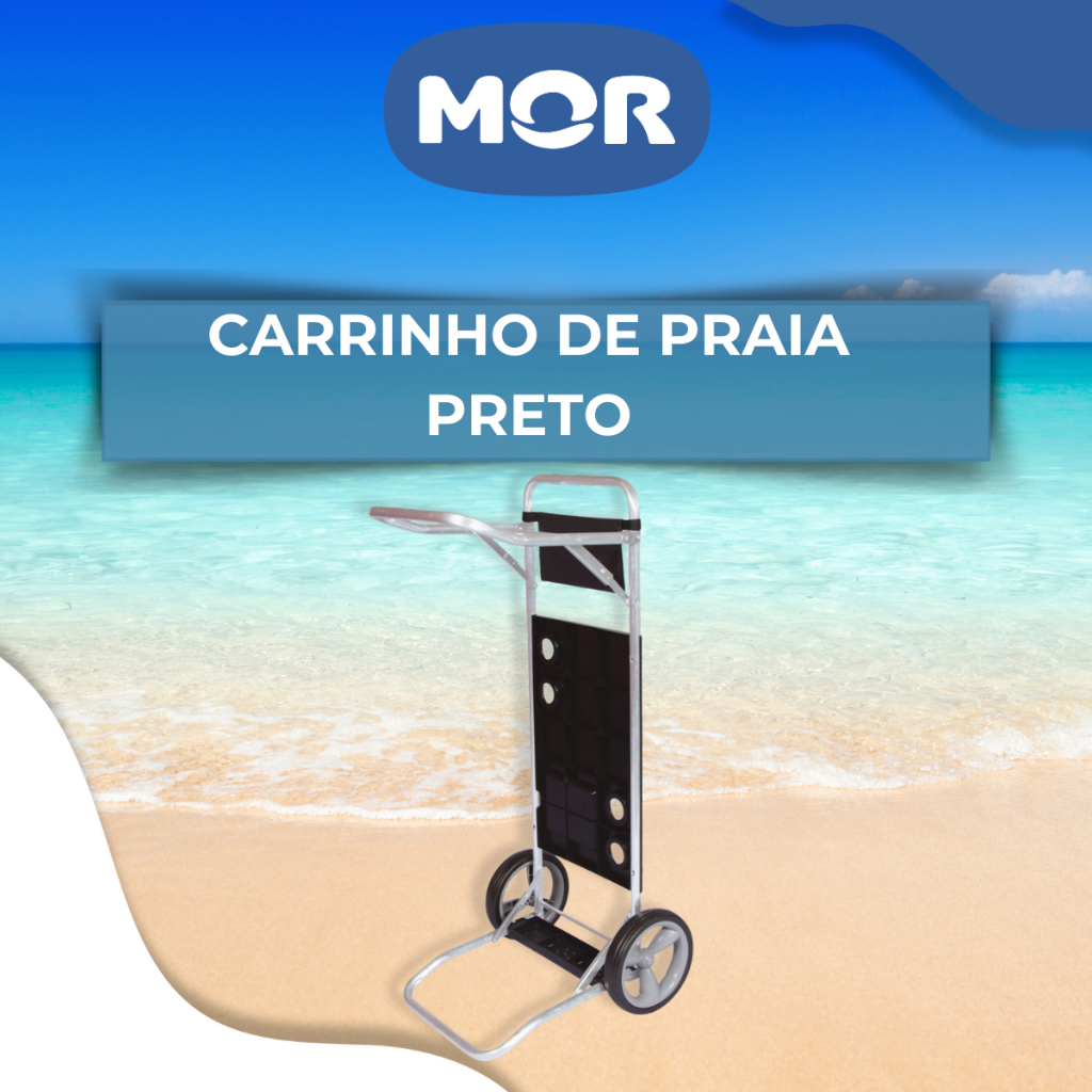 Carrinho de Praia Mor Dobrável Preto com Rodas para Cadeiras e Guarda-sol