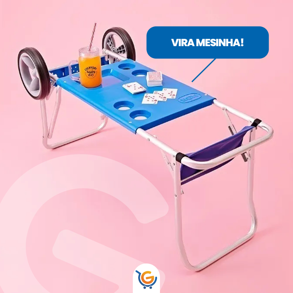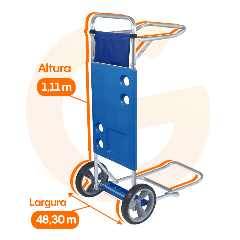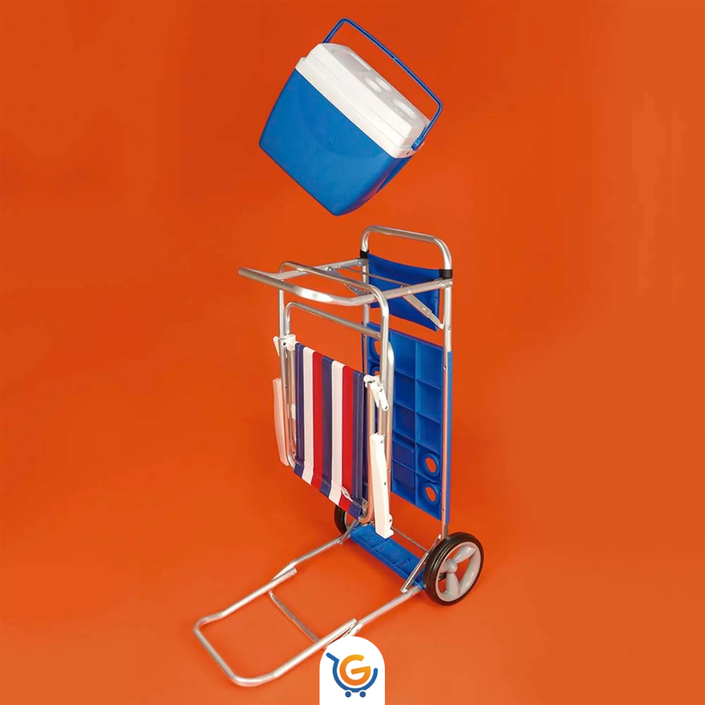 Carrinho de Praia para Transporte Cadeira Cooler Guarda Sol Vira Mesa Leve Resistente Até 20Kg Mor