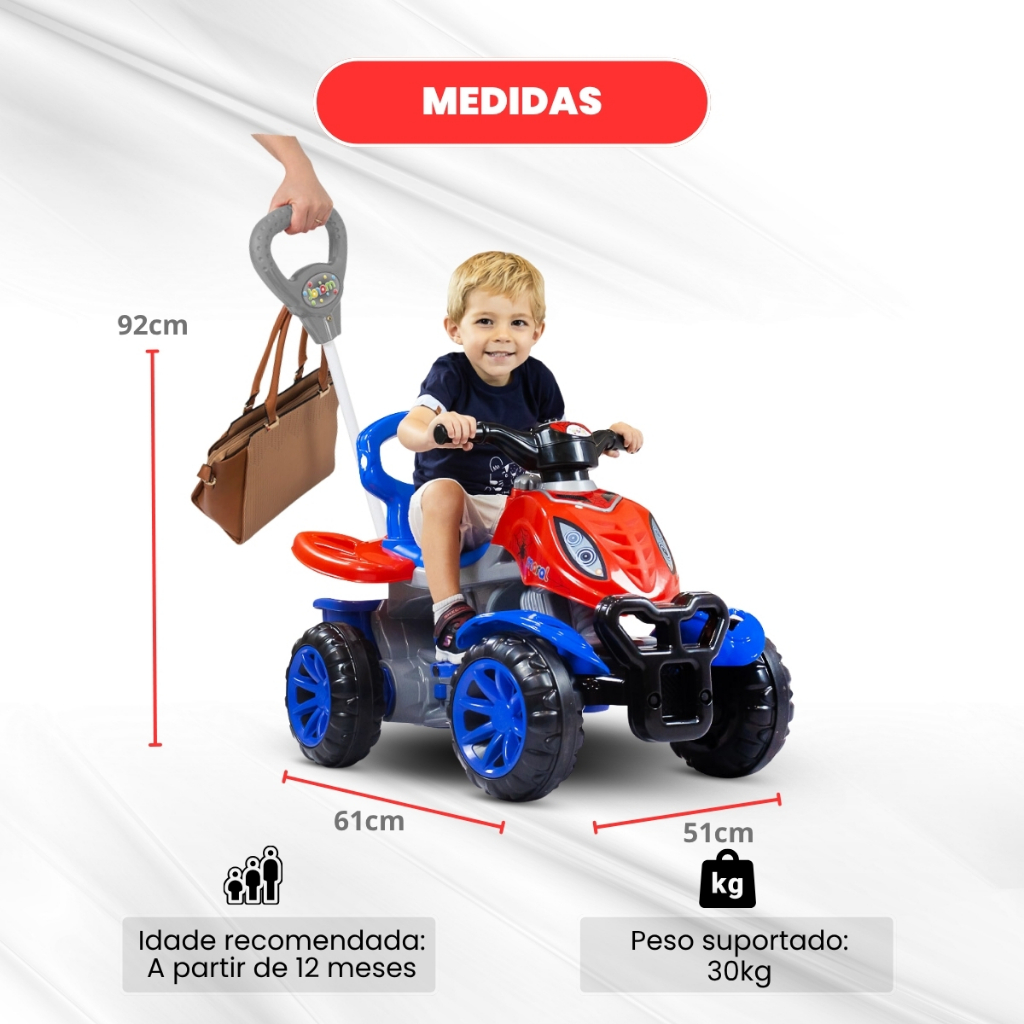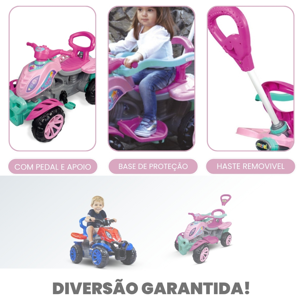 Carrinho de passeio Quadriciclo infantil com buzina e pedal Maral Spider