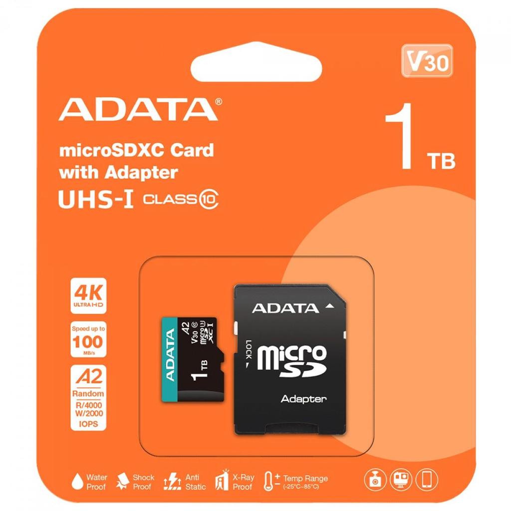 Cartão De Memória Adata Premier Pro MicroSDXC/SDHC UHS-I, 1TB, Classe 10, Com Adaptador, AUSDX1TUI3V30SA2-RA1