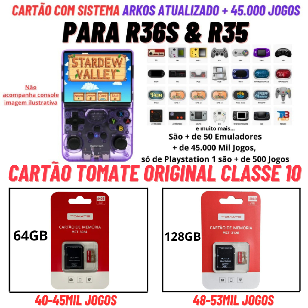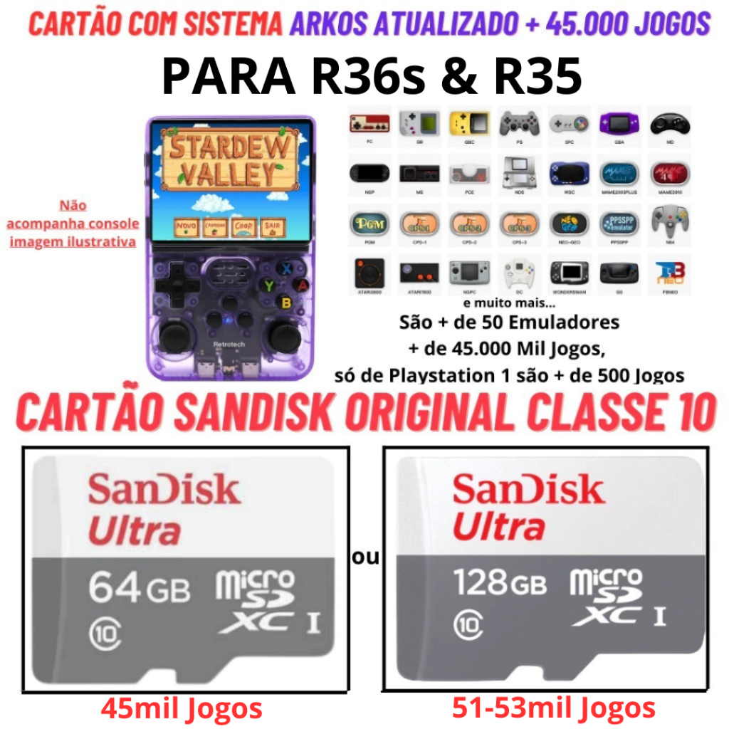 Cartão Original com Sistema e Jogos para R36s e R35 Cartão Sandisk Original Classe 10