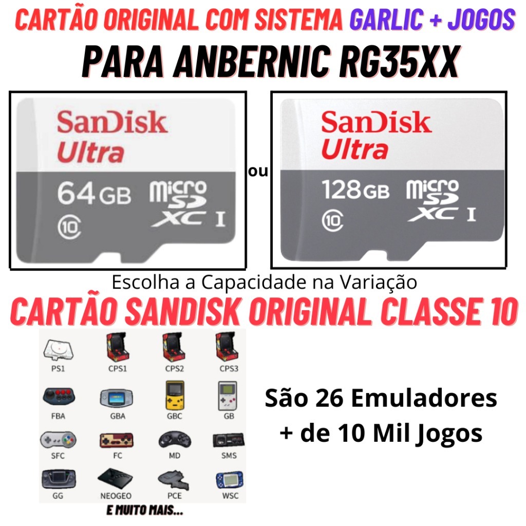 Cartão Original para Anbernic RG35xx 2023 Com GarlicOs + Roons Sandisk Original Classe 10