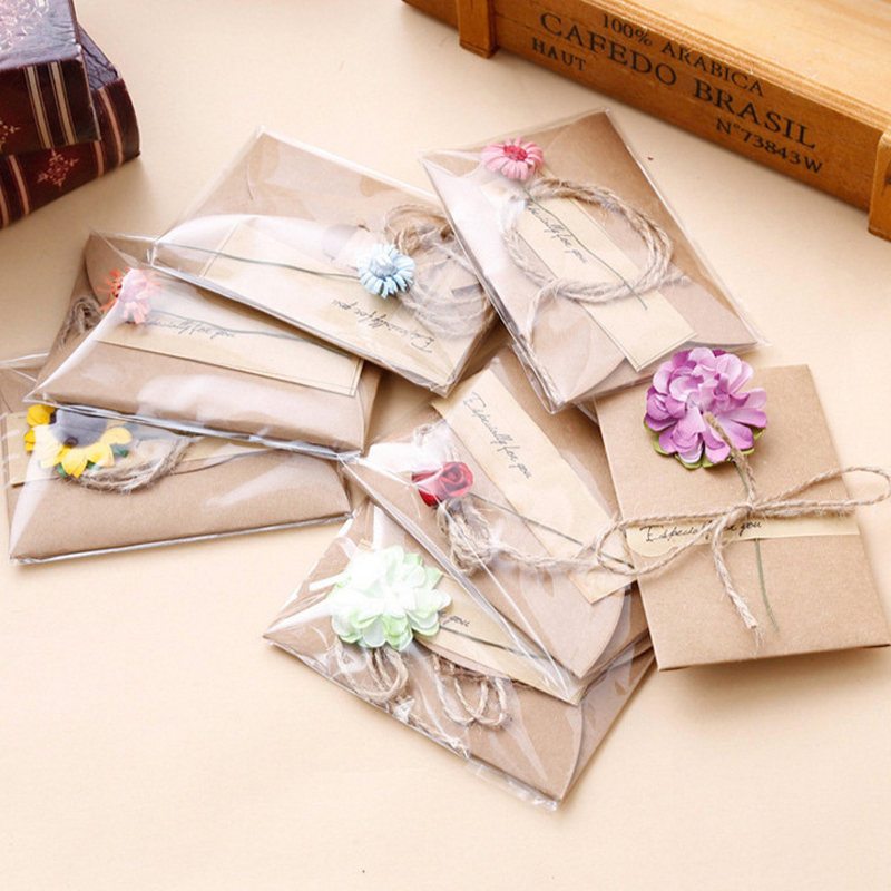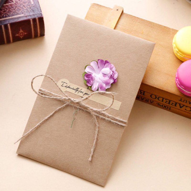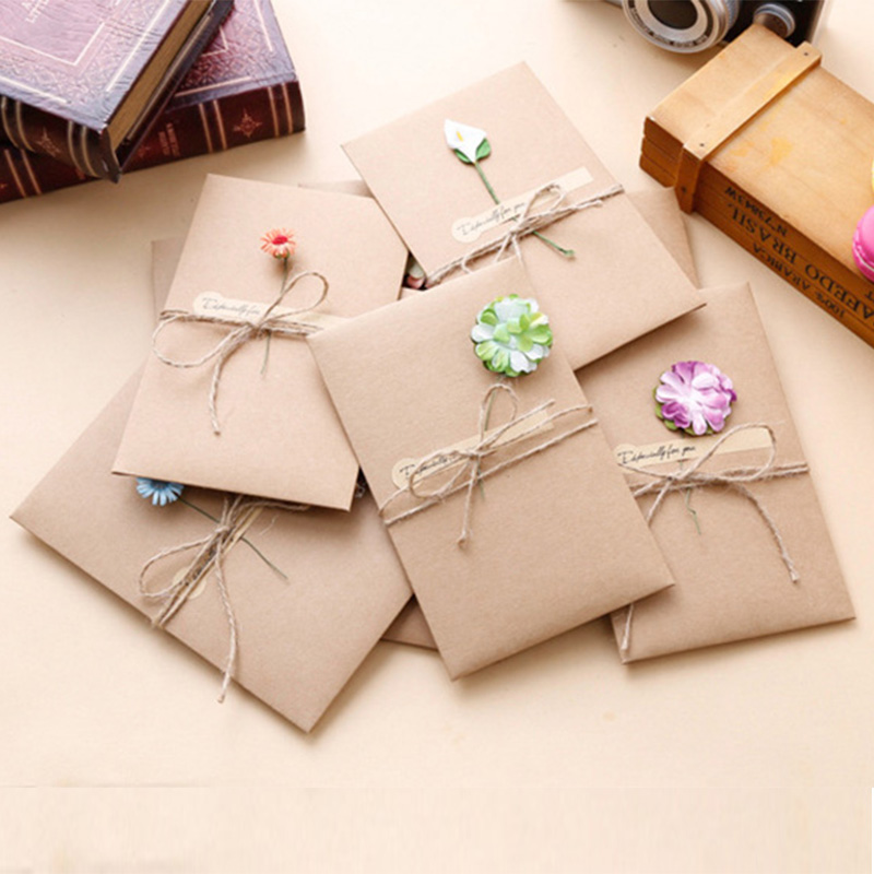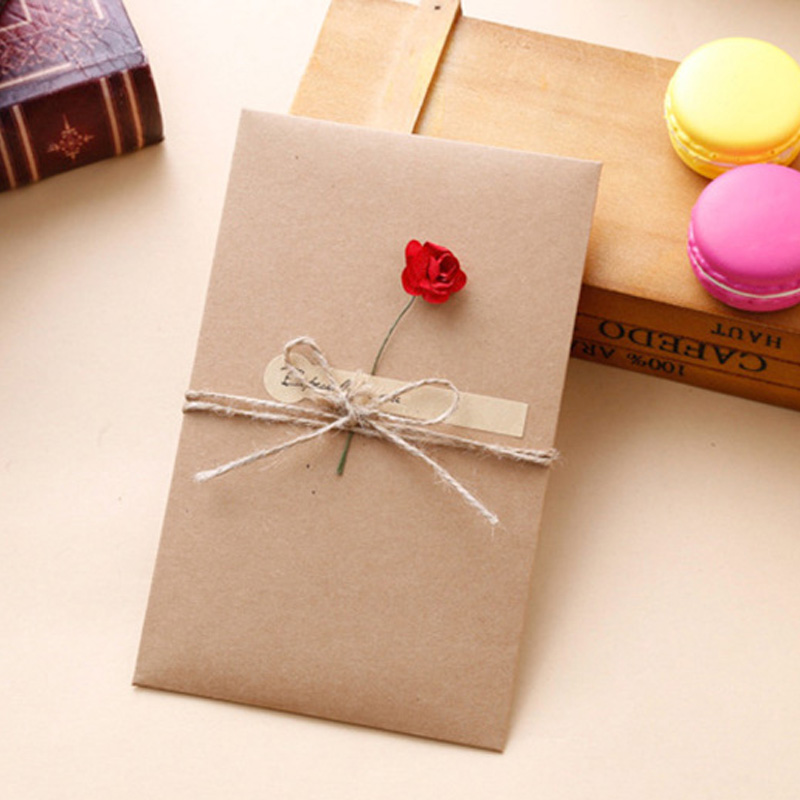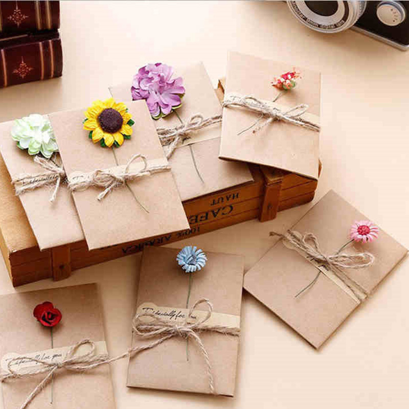 Cartão Postal De Boas Festas Retro Simples De Simulação De Flores Papel Kraft Criativo Carta De Amor