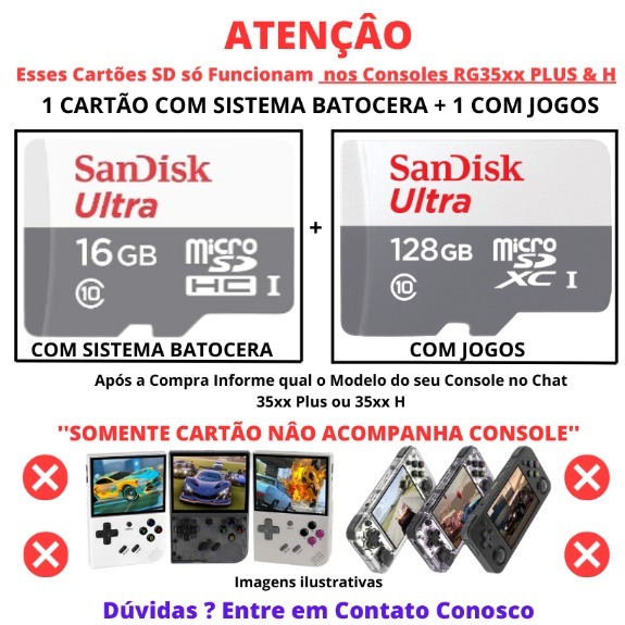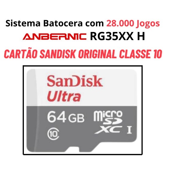 Cartão para Anbernic RG35xx H com Sistema Batocera + 35mil Jogos Cartão Sandisk Original Classe 10