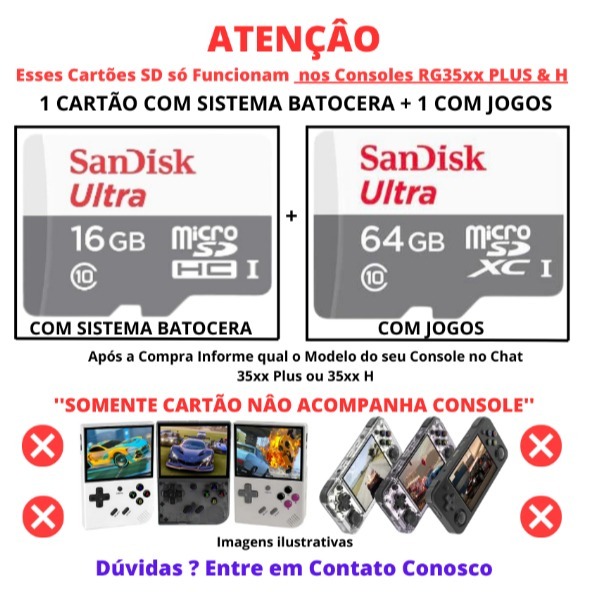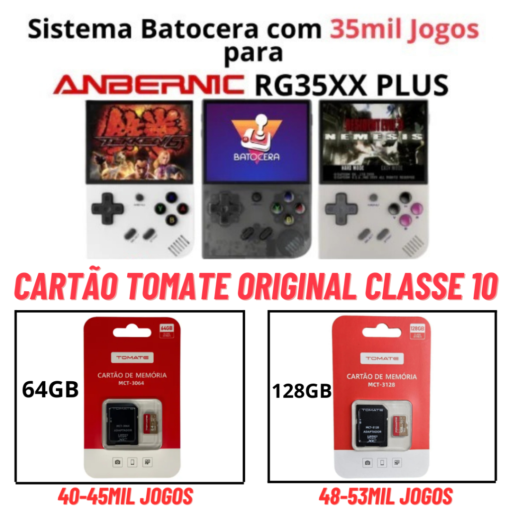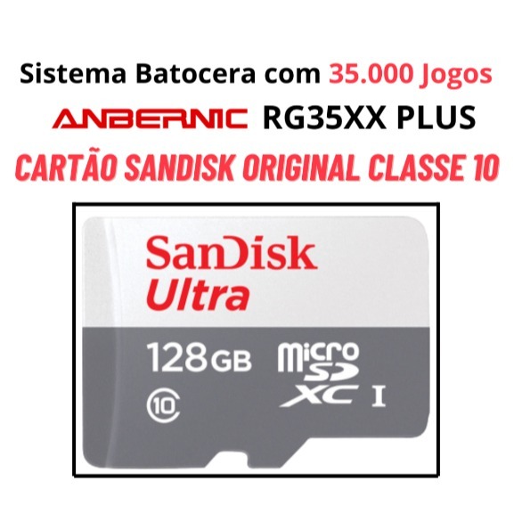 Cartão para Anbernic RG35xx Plus com Sistema Batocera + 35mil Jogos Cartão Sandisk Original Classe 10