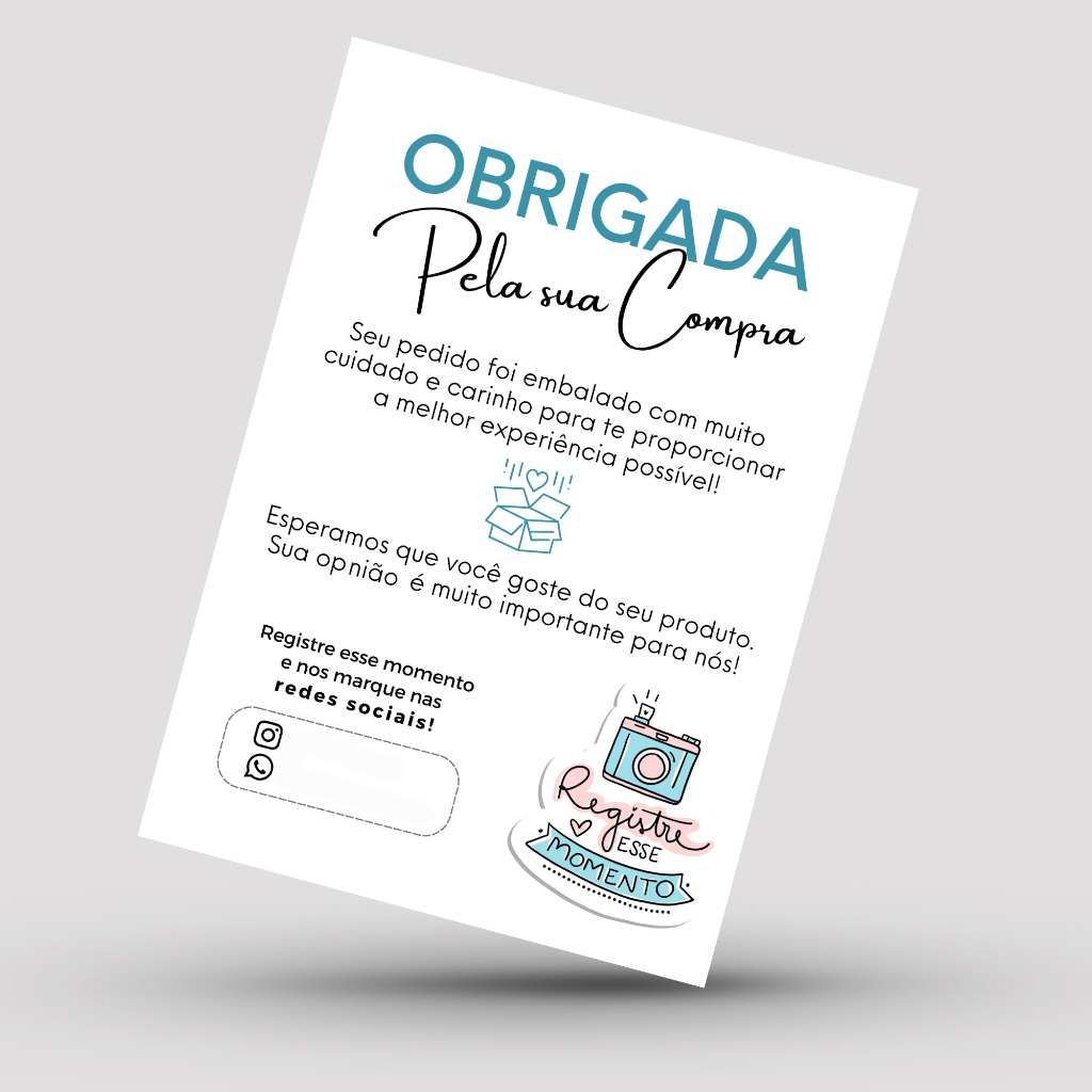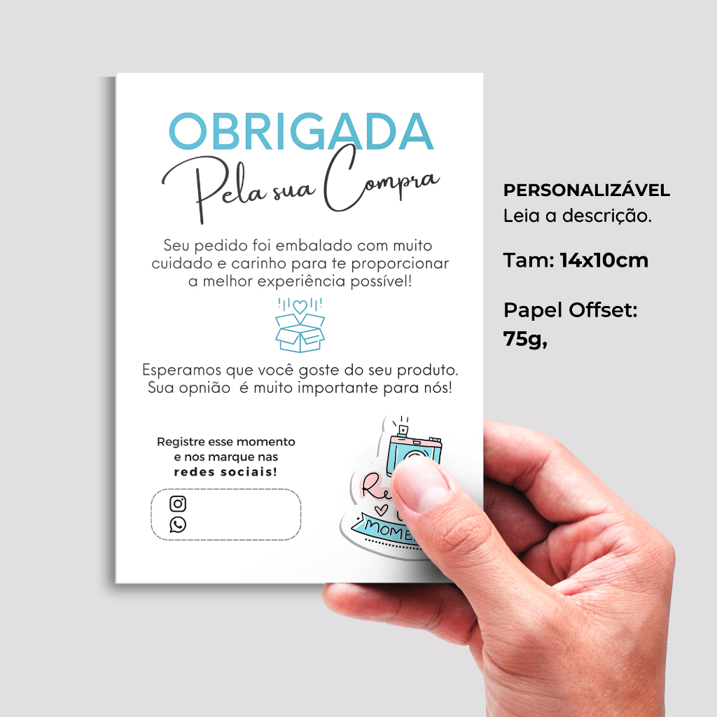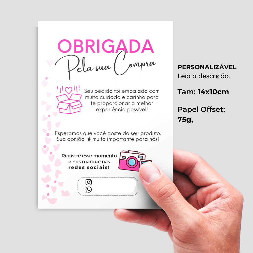 Carta de Agradecimento ao Cliente NÃO PERSONALIZADA- Envio imediato Cartão para lojas, ecommerce, empresa. 10x14cm