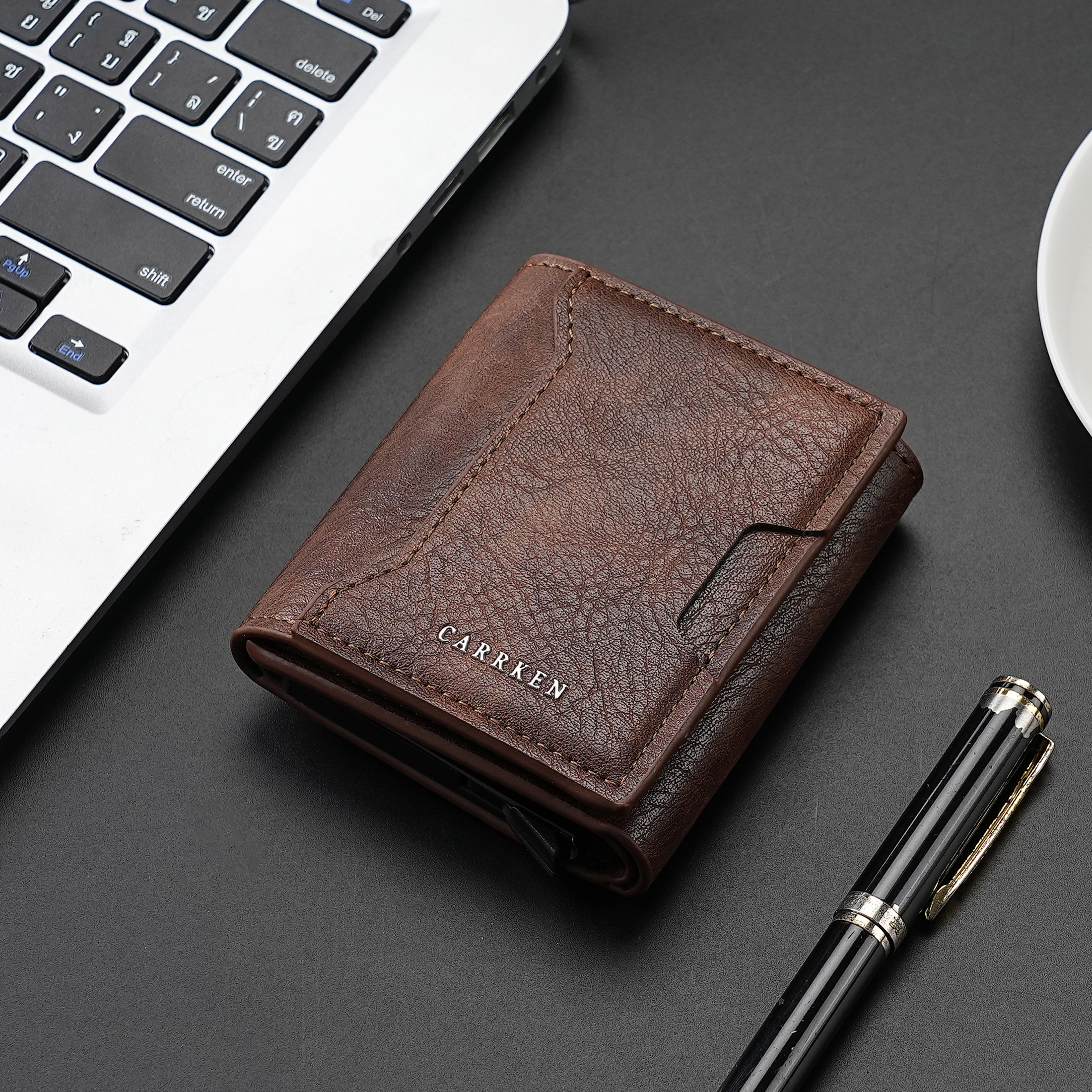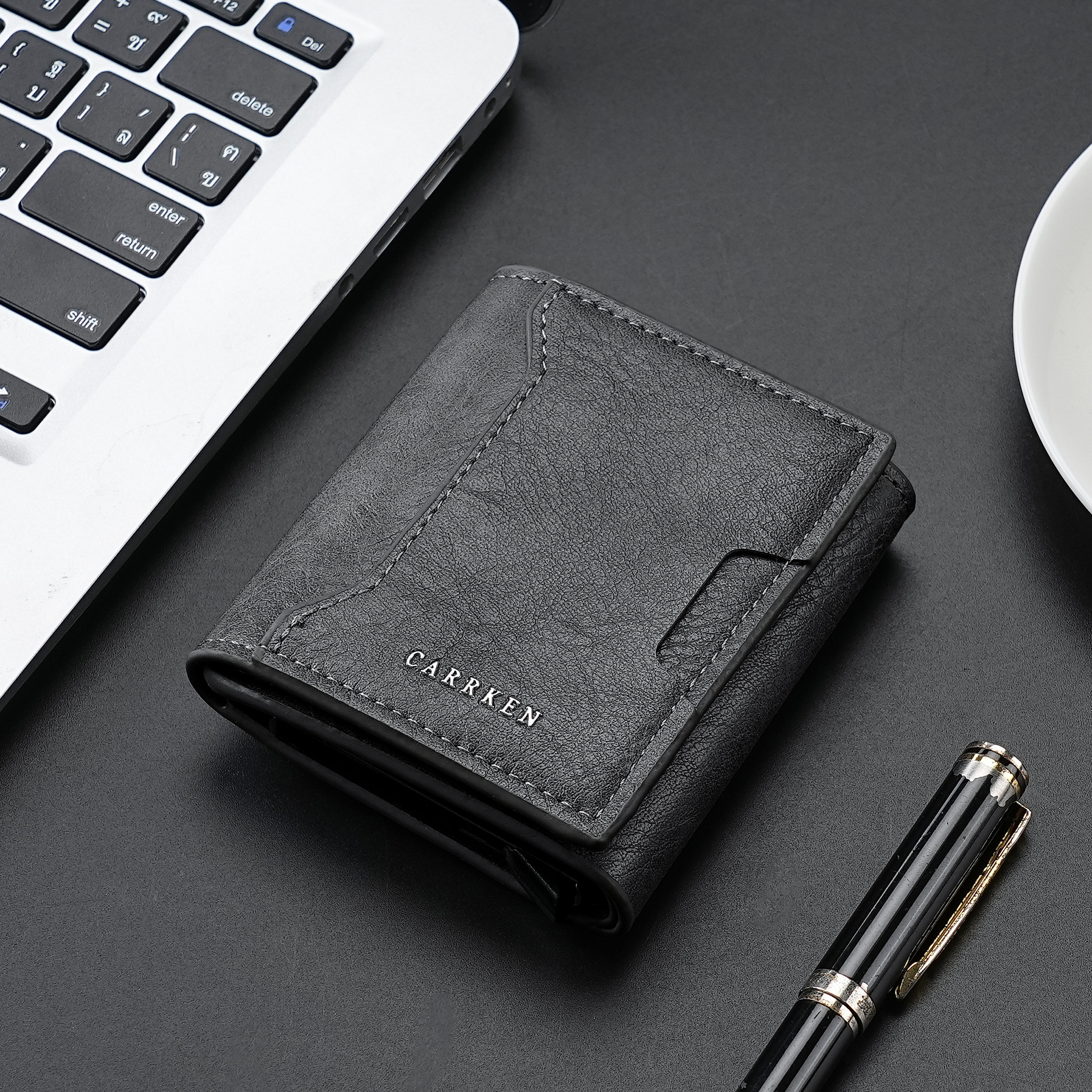 Carteira De Couro Masculina Elegante Curta Vertical-Porta-Cartões Multifuncional Unissex Com Vários Slots E Bolso Para M