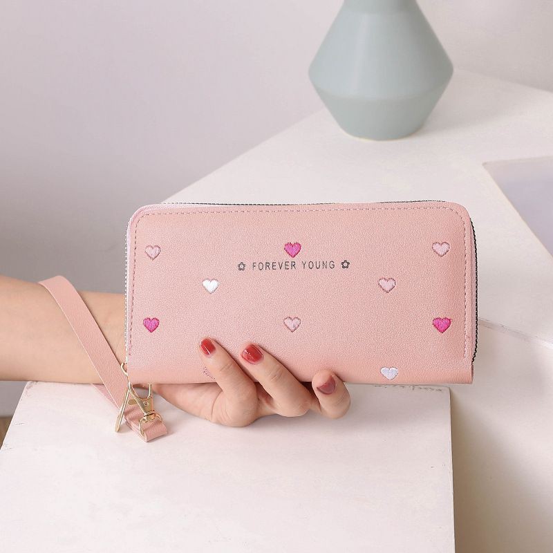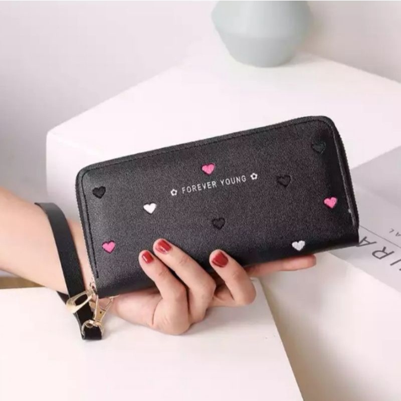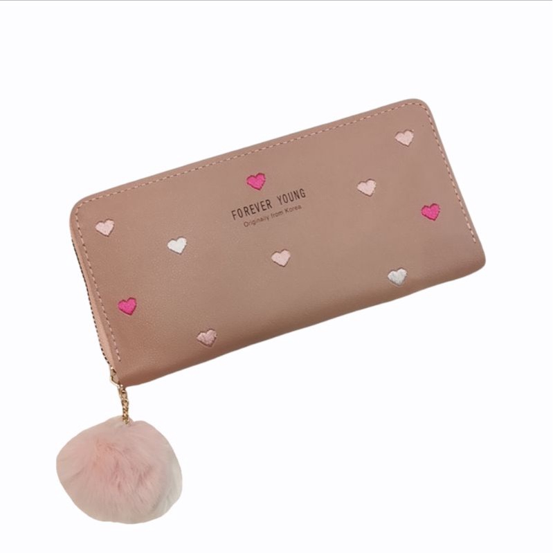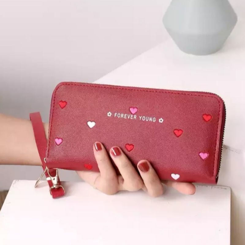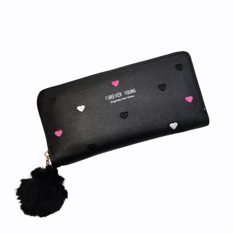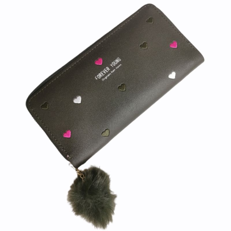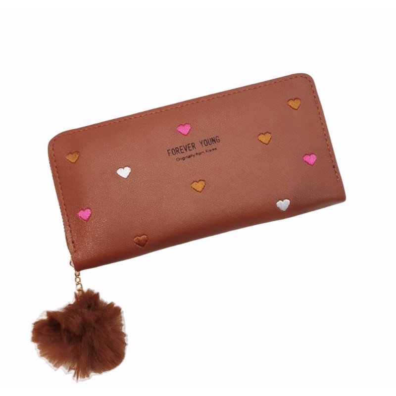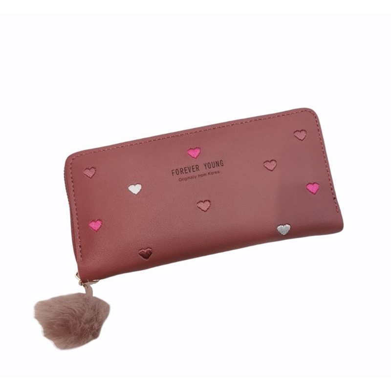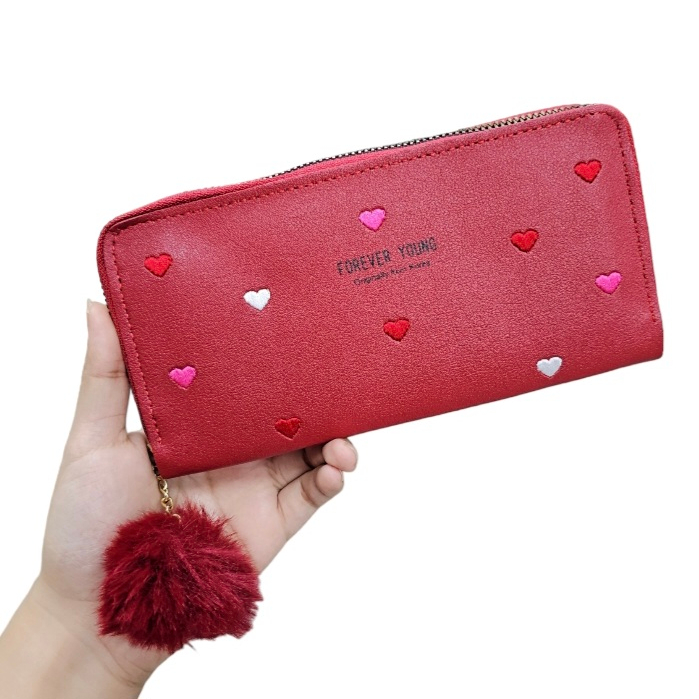 Carteira Feminina + alça de mão porta celular, cartão, documento, moedas coração COM/ SEM POMPOM