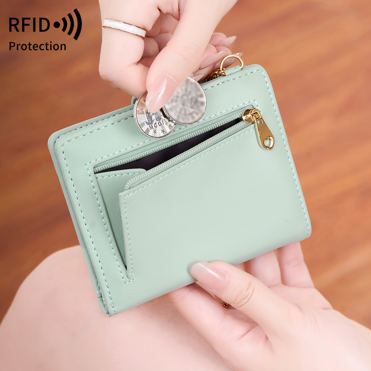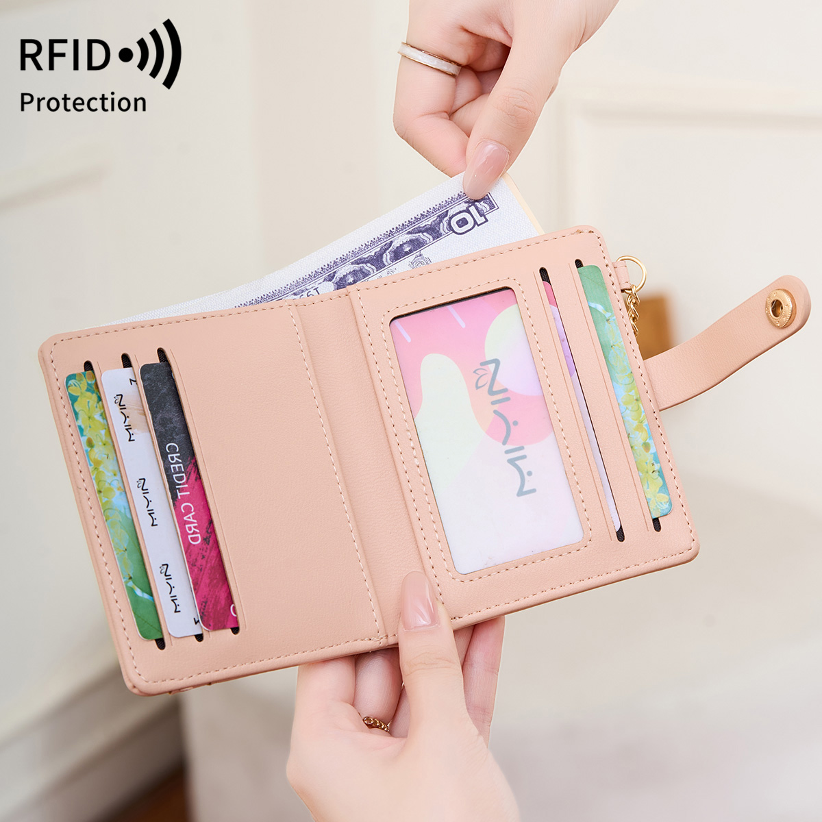 Carteira compacta de bloqueio RFID para mulheres | Minimalismo, ultrafina, bi-dobra com vários slots para cartões,