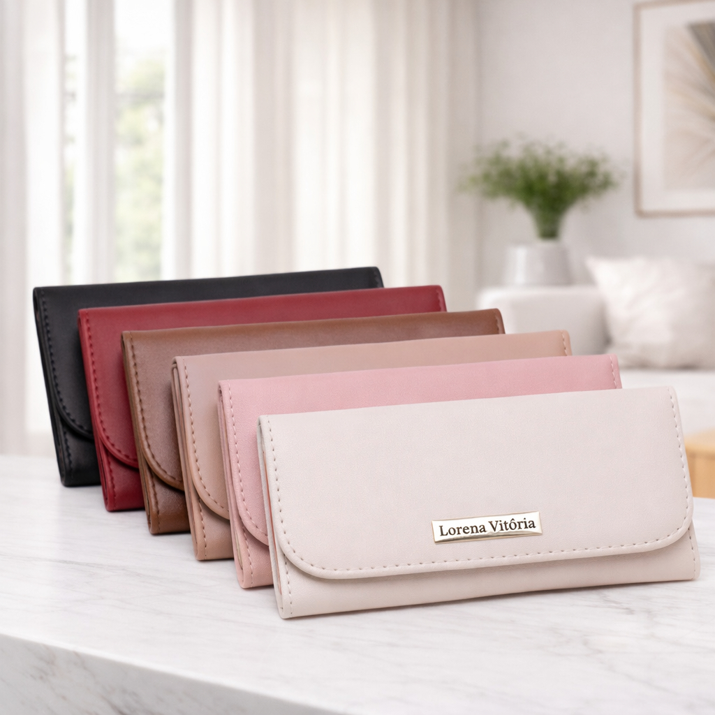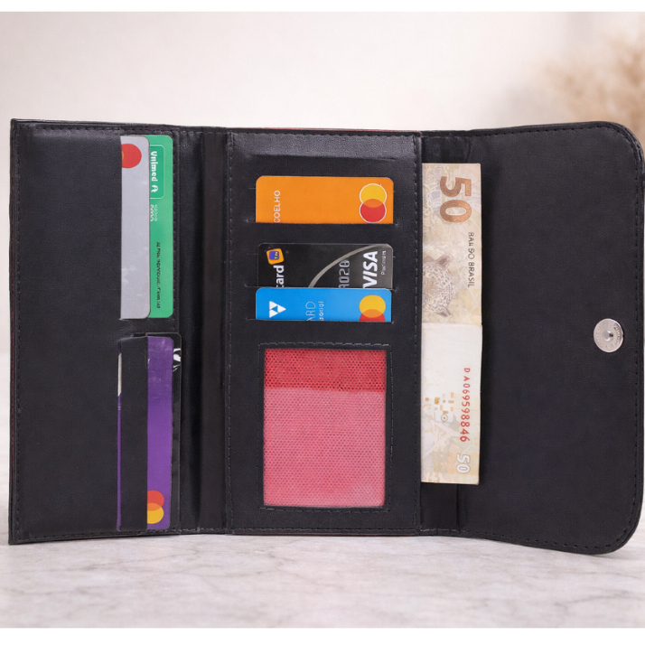 Carteira feminina slin porta cartão cheques cédulas e documentos.
