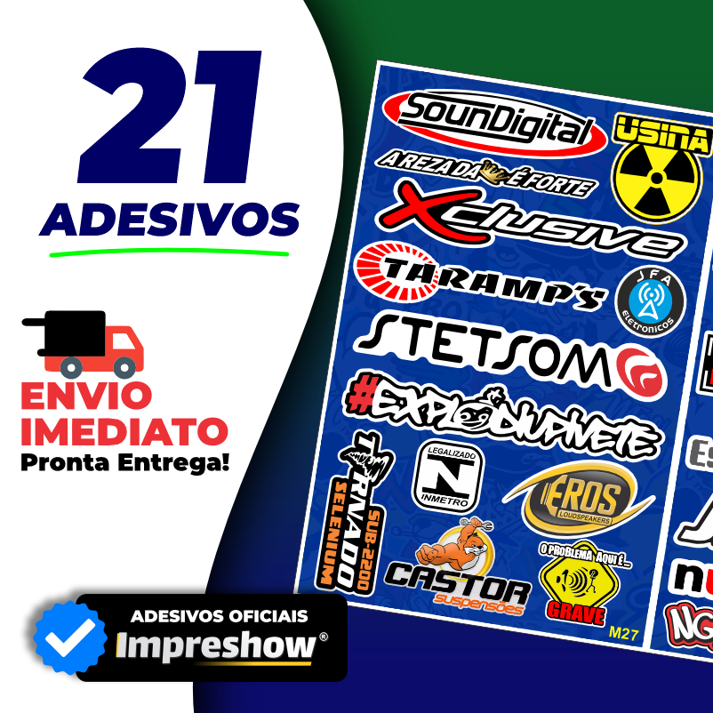 Cartela de Adesivos para Carro Som automotivo com 21 Adesivos M27