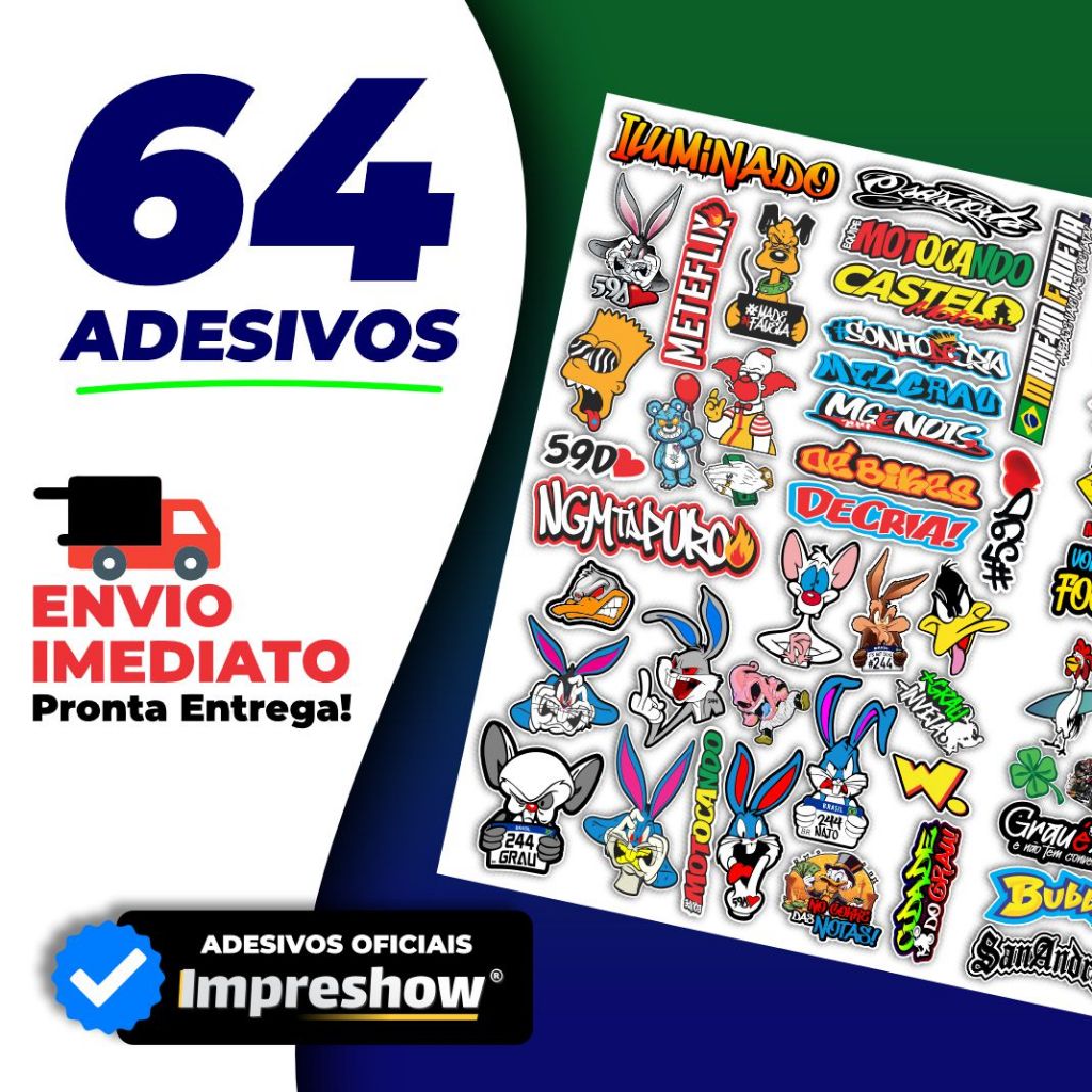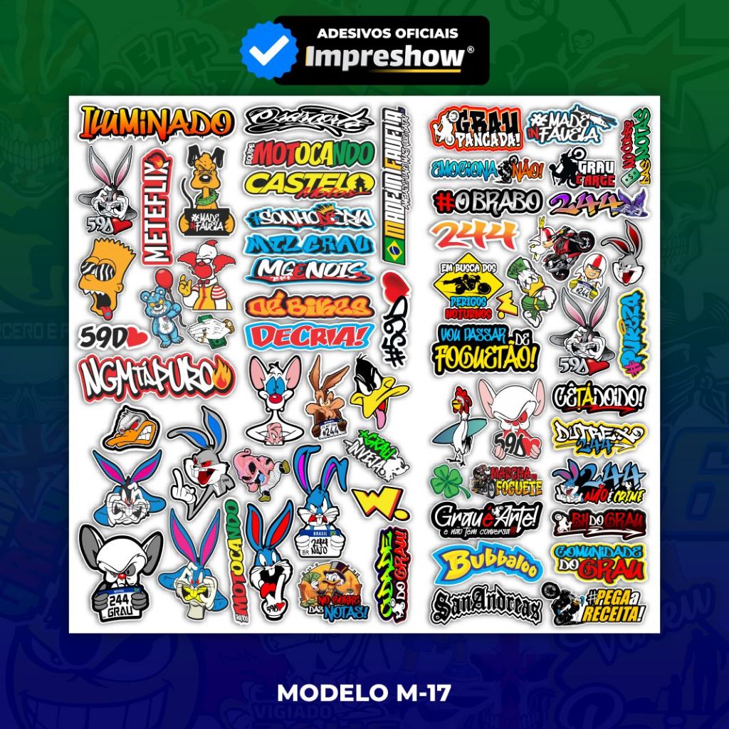 Cartela de adesivos 64 unidades - para Bike Carro Moto Capacete impreshow M17