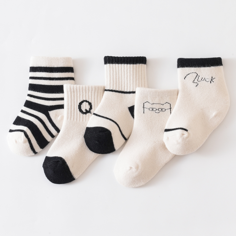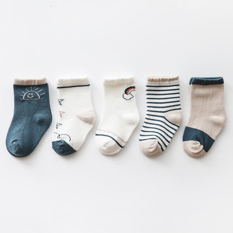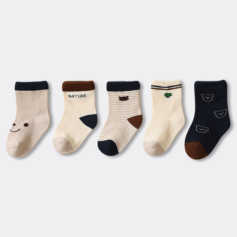 Cartoon Bear Baby 5 Pares Meias Elásticas De Algodão Macio Para Crianças De 0 A 5 Anos