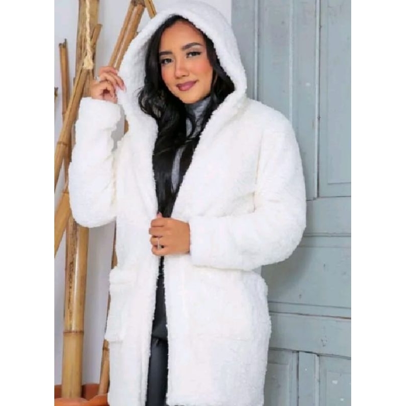 Casaco Teddy Feminino Max Longo com Capuz Peluciado Quentinho Moda Inverno Tendência 2026