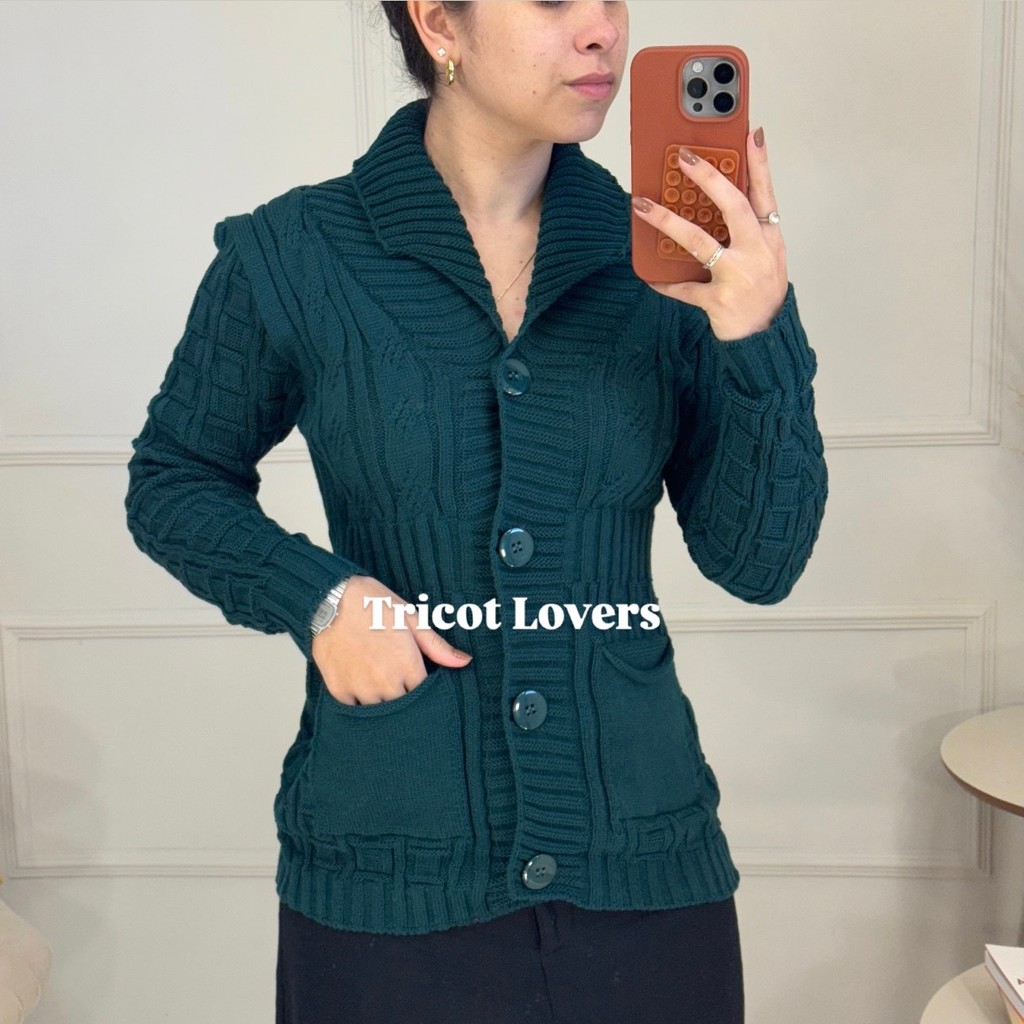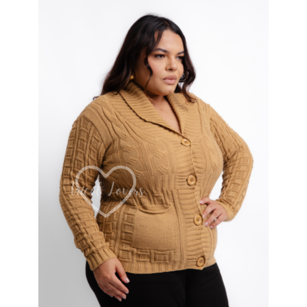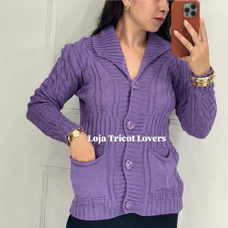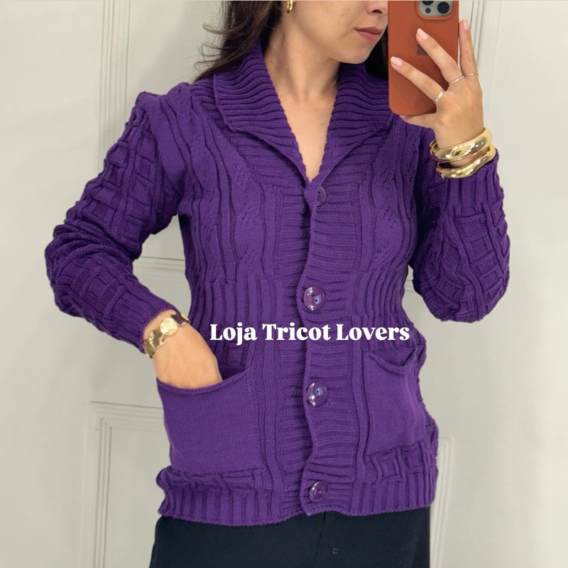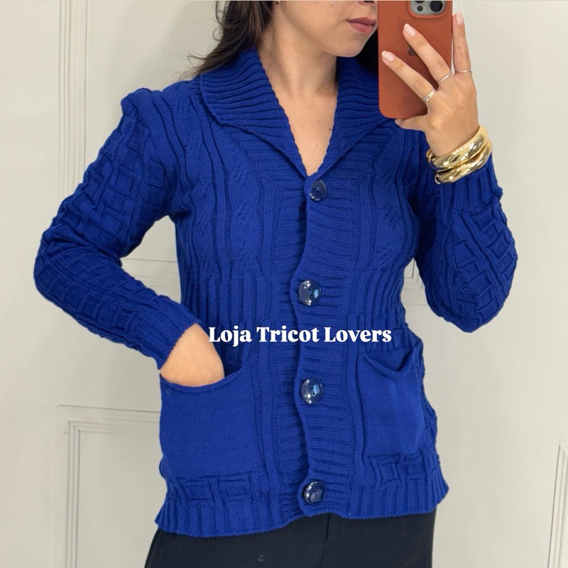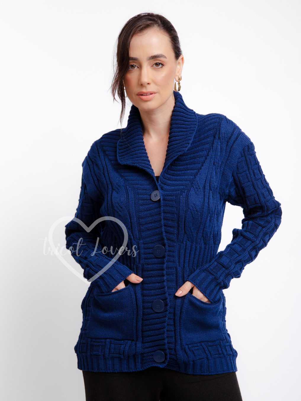 Casaco Feminino Tricô Com Botões e Bolsos Inverno Modelagem Ampla