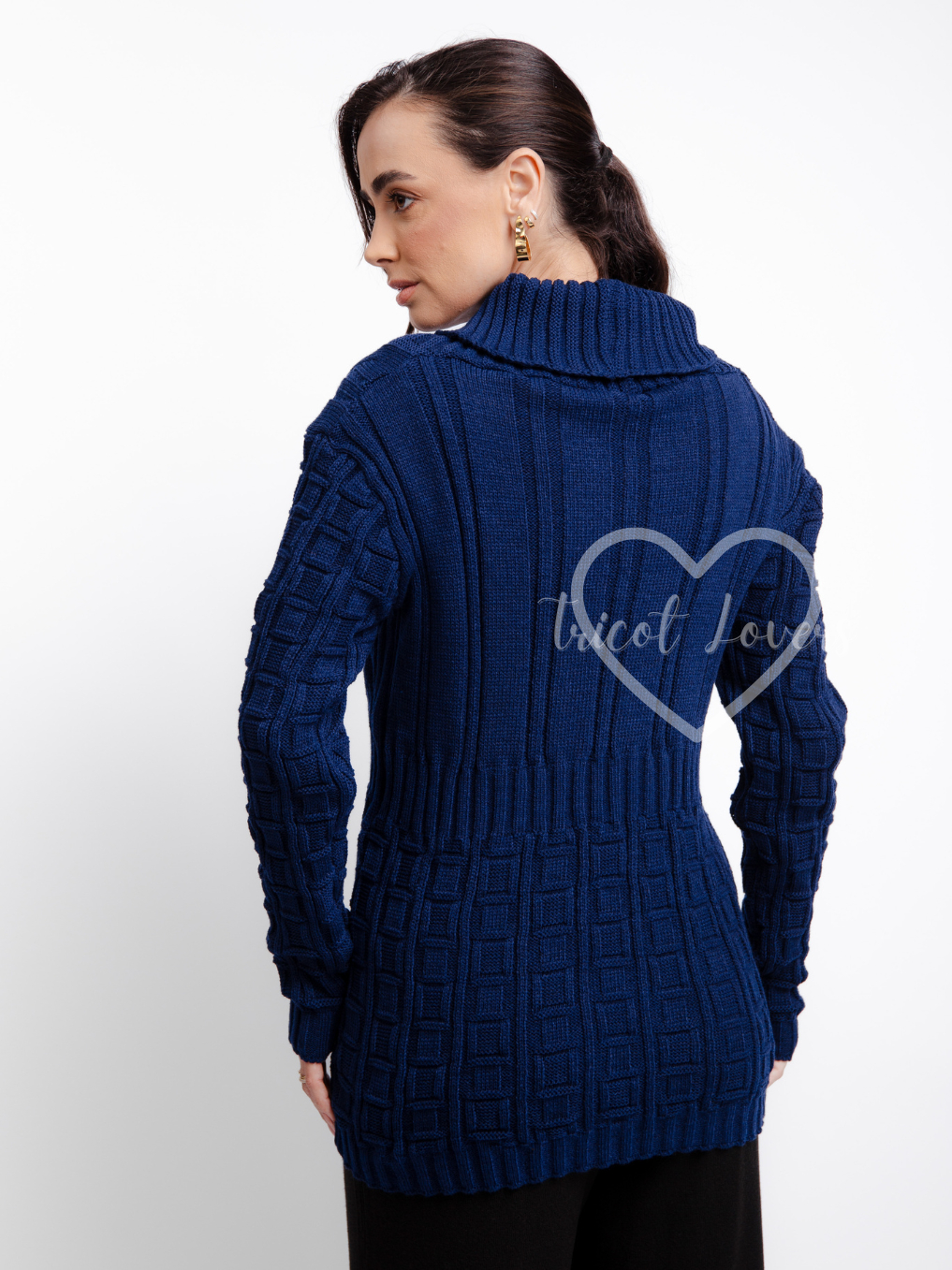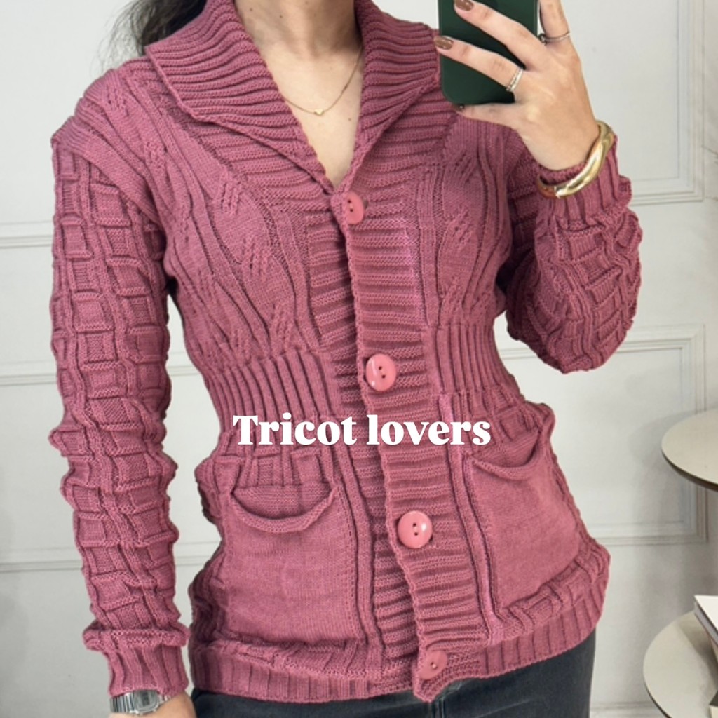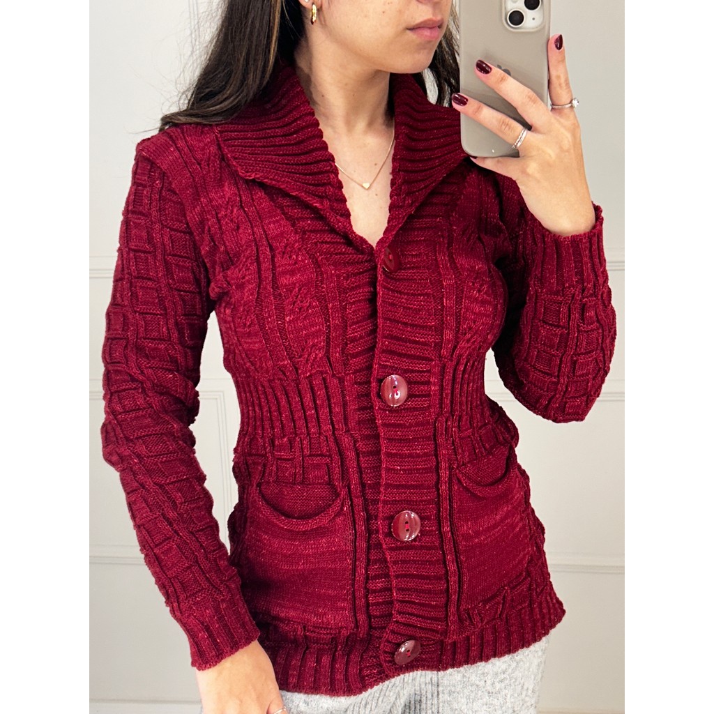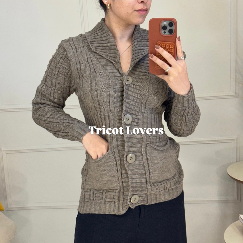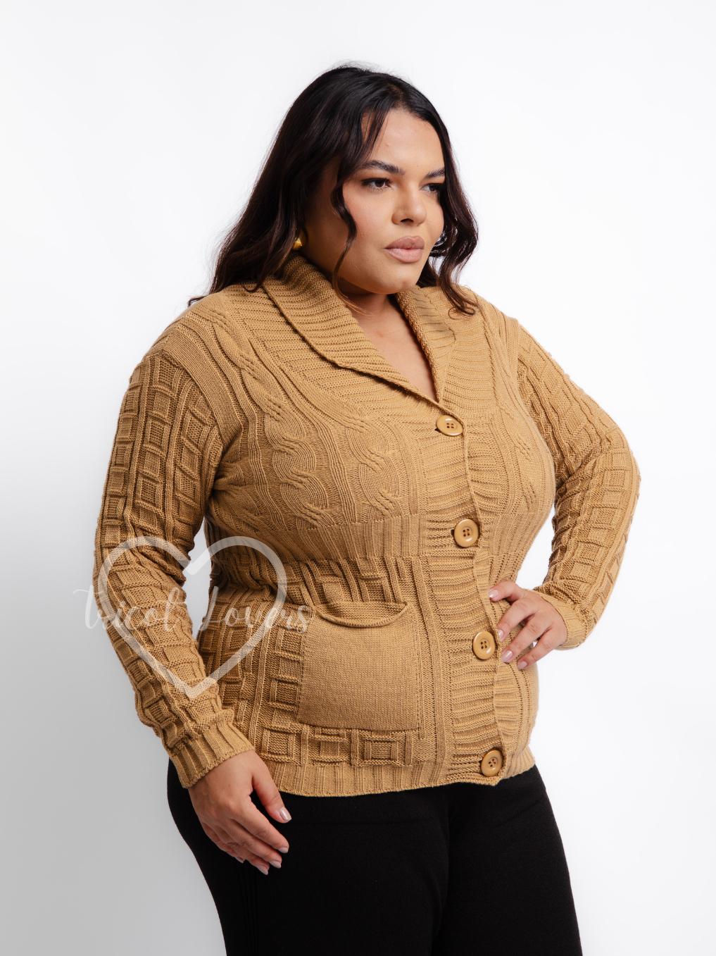 Casaco Feminino Tricô Com Botões e Bolsos Inverno Modelagem Ampla
